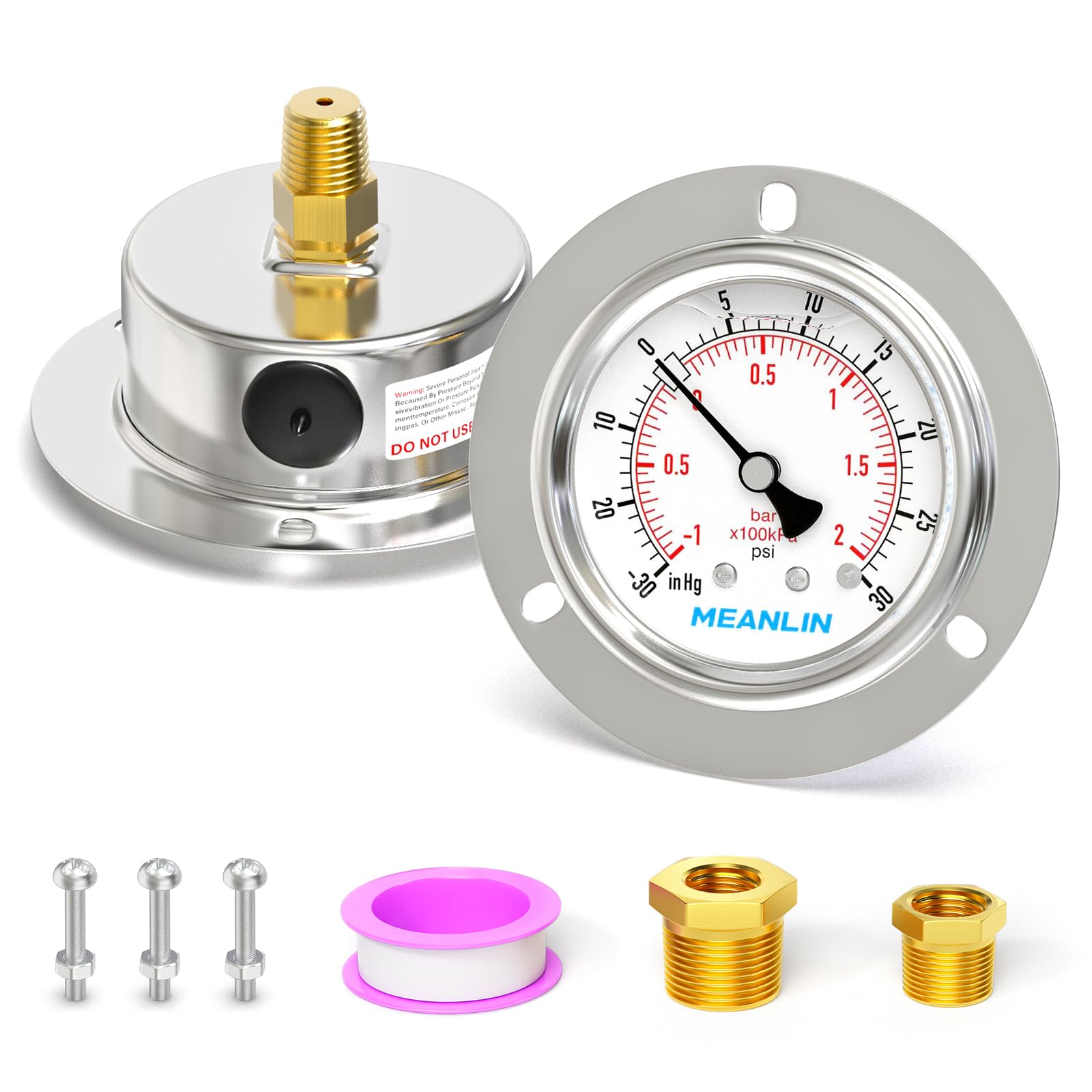 MEANLIN MEASURE -30inHG~30Psi Liquid Fil... |