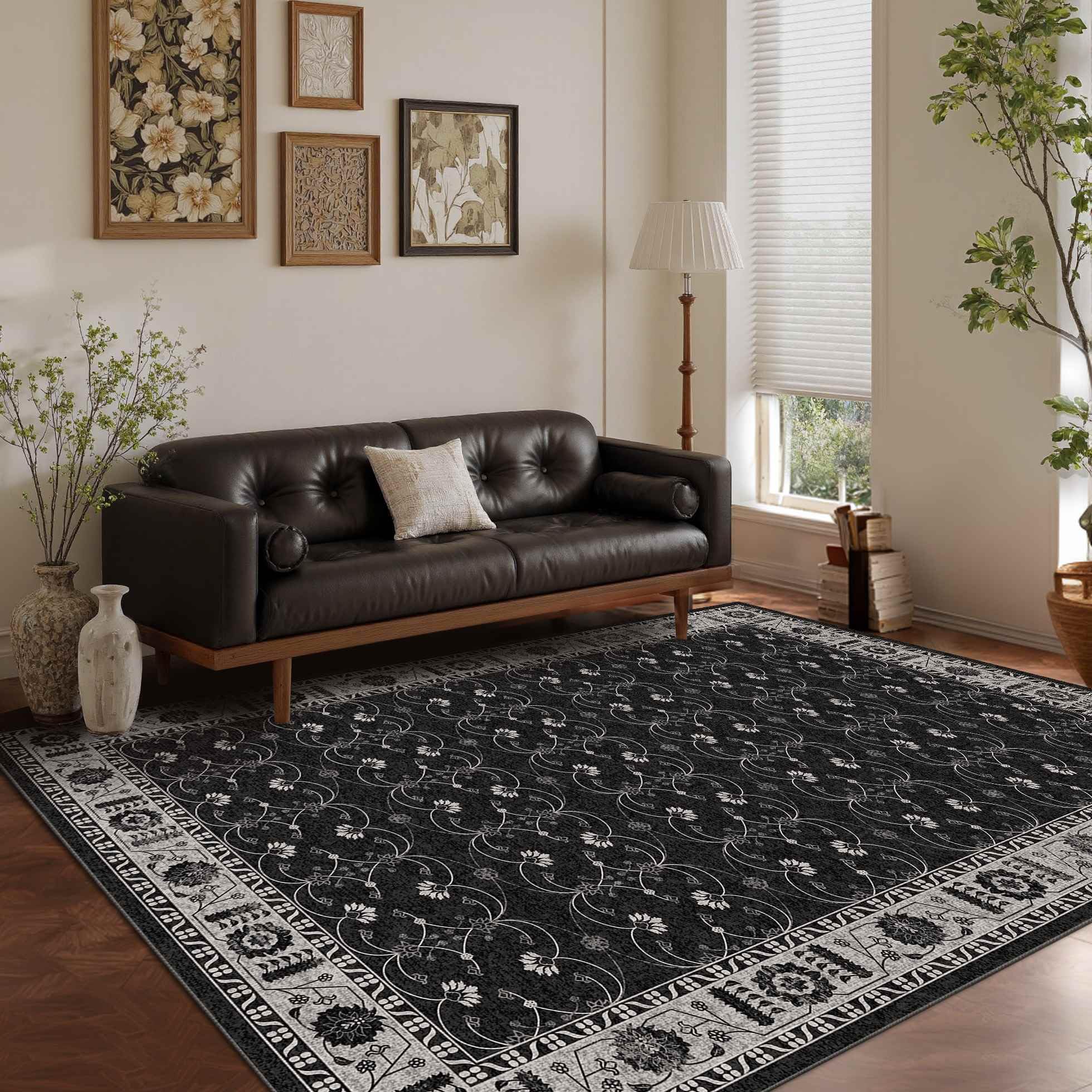 Rugxara Black Rug Area Rugs 5x7, Washabl... |