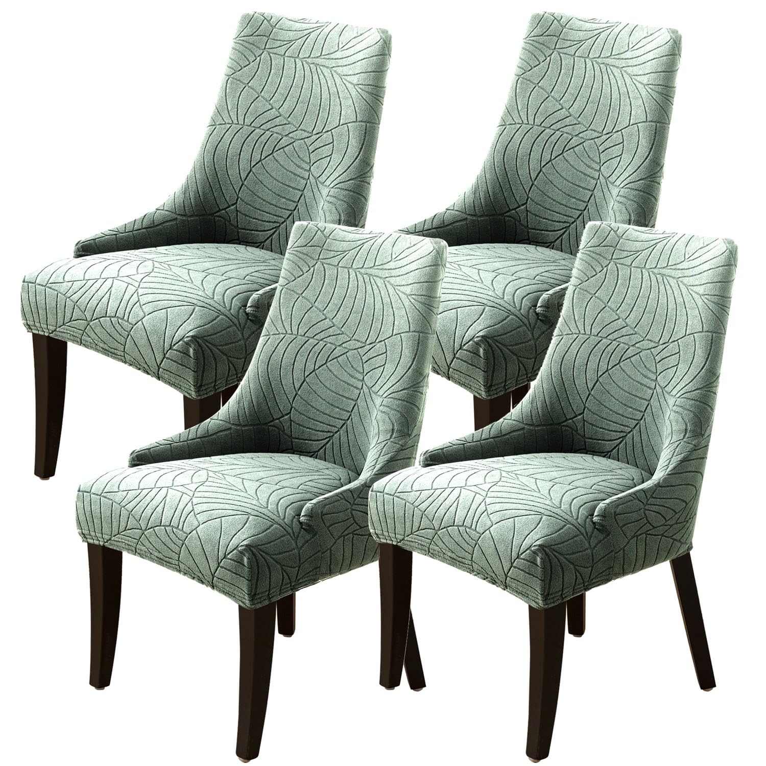 【Upgraded Spandex Fabric】Dining chair covers made of 92% polyester and 8% spandex fabic, soft and comfortable feel, full and fluffy, delicate and breathable, thick texture is not easy to wrinkle, not easy to pull, with strong recovery ability. Suitable for all seasons. It not only protects your furniture, but also transform an old, worn out couch into the stunning centerpiece of your room 【Suitable for Wingback Chair Size】Stretch wingback chair slipcover, suitable for Seat length(above seat): 20-24"(51-61cm). Seat width: 18-22"(46-56cm). Seat thickness: 4-7"(10-18cm). Back height: 22-26"(56-66cm). Back width: 18-21"(46-54cm). Wing height: 8-12"(20-30cm). Which suitable for most standard wingback side chairs,armchairs, accent chairs ect. (Please check the measurement guide in the item picture before order. ) 【All-cover Furniture Protector】Our dining chair slipcovers adopt a carefully sewn elastic bottom. Super stretch-stretch that recovers quickly, 360° perfect fit chair. This chair cover can protect your accent chair from food and drink spills, pet hair and messy, cover the tear, rips, and tattered edges of your old chair, at the same time, this kind of chair cover is not only practical, but also beautiful, can make your old chair brand new, for the family with pets and children 【Widely Usage】Elastic chair covers for dining chairs, there are 1/2/4/6 Pcs for you to choose from. Different colors can also meet your needs in different occasions. Slip covers for a chair fit for most accent chairs, dining room& kitchen chairs Slipcovers for chairs can be used for hotel, wedding banquet, birthday party, Thanksgiving & Christmas dinner and family dining room decoration, etc 【Easy to Install and Care】Wing arm chair covers are removable for easy clean. Tumble dry at low speed or hang dry, wingback chair covers have elastic edges, just slip on, then tuck the extra fabric into the gap between the back and sitting cushions, You'd better wash with cold water before use it. Machine washable in cold water on the gentle cycle. Do not bleach Product Name: Wingback Chair Covers