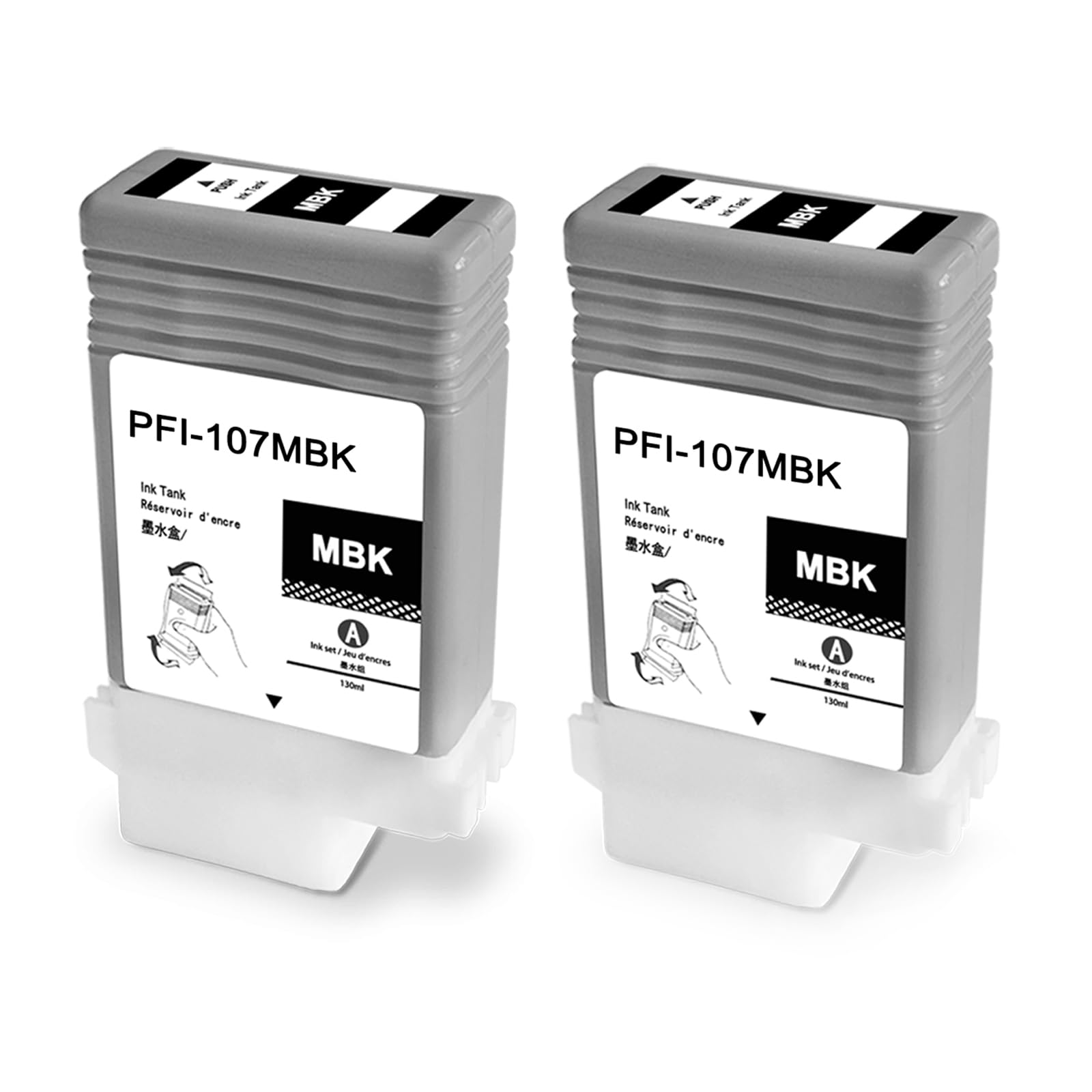 Cartridges Model: compatible with Canon PFI107 ink cartridge Compatible Printers: Replacement for Canon imagePROGRAF iPF670, iPF670 MFP L24, iPF670 MFP L24e, iPF680, iPF685, iPF770, iPF770 MFP L36, iPF770 MFP L36e, iPF770 MFP M40, iPF780, iPF785 printers Package Contents: 2 bottle of 130ml Pigment PFI-107MBK matte black 6704B001AA ink tank. Superior Quality: This high-yield PFI-107 ink cartridge uses the latest chip technology and high-quality pigment ink, with an anti clogging nozzle design and easy installation. Provide clear text and graphics After-Sales Guarantee: Our ink cartridges have undergone strict quality inspection before leaving the factory. The ink you receive will be the most perfect. If you have any questions, please contact us, and we have professional technical support to help you solve the problem