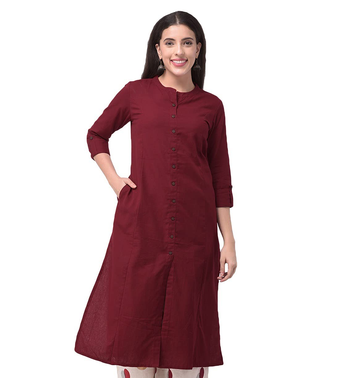 Women's Pure Cotton Plain Tunic Top Fron... |