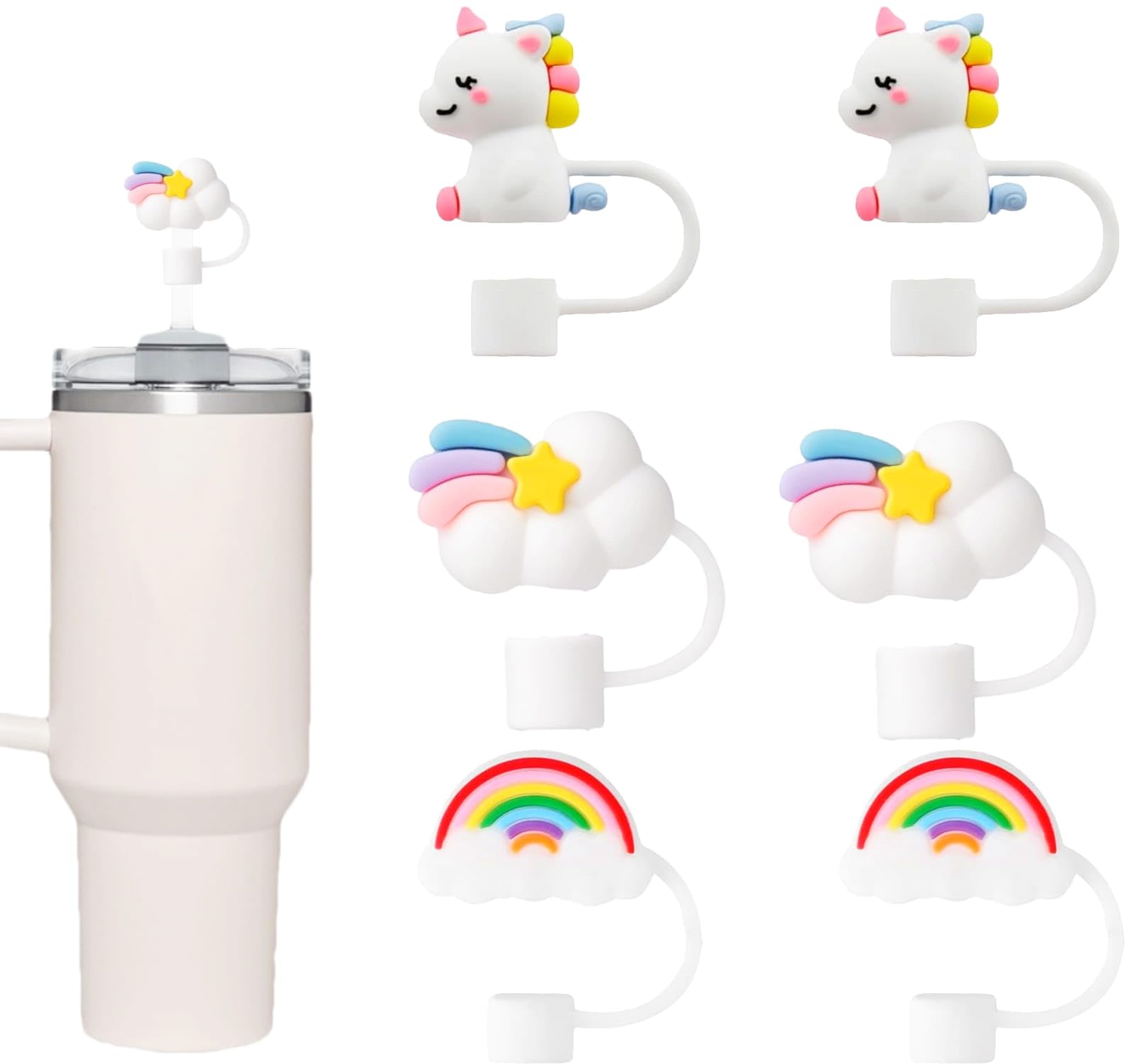 SCRMROIA 6Pcs 3D Rainbow Cloud Straw Top... |