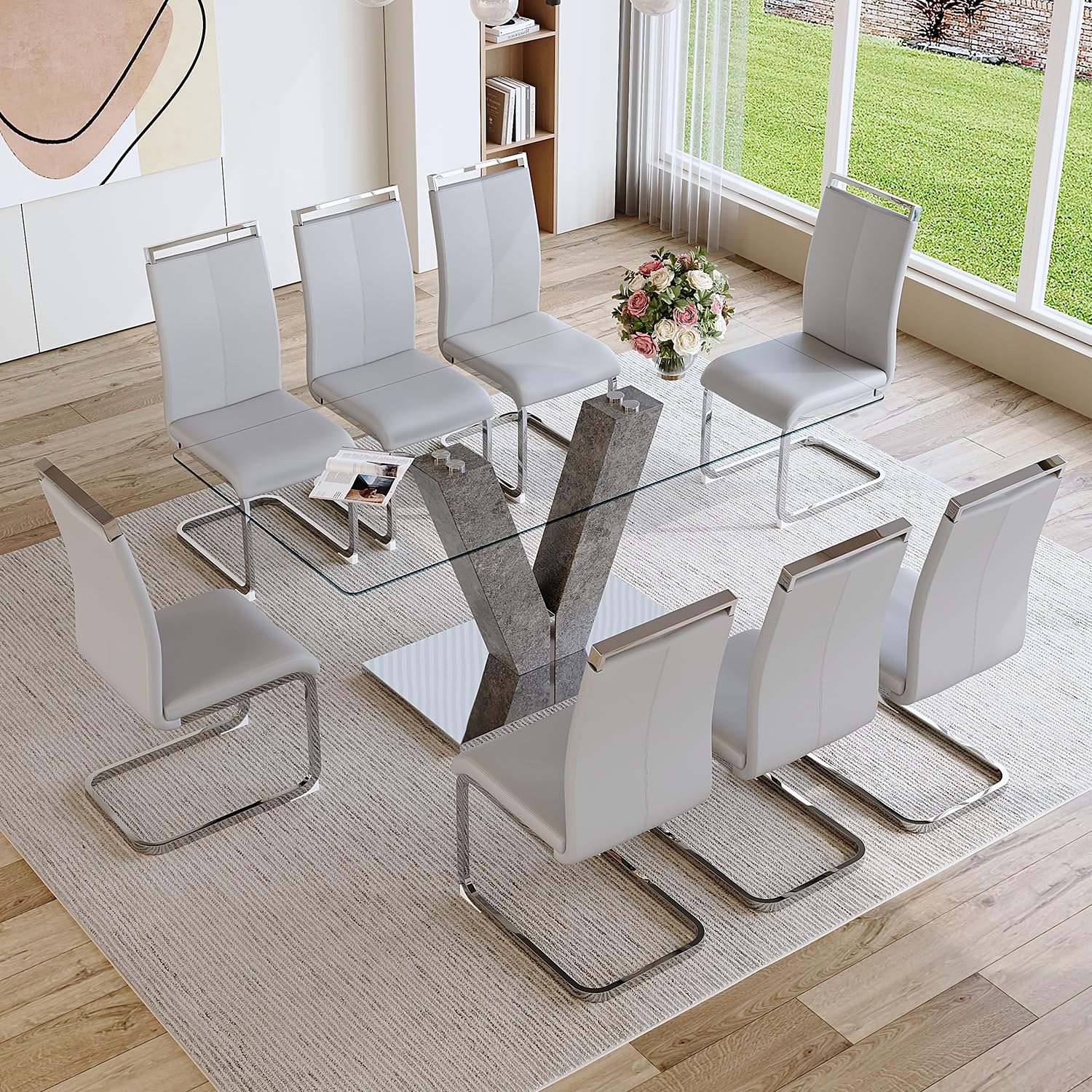 gopop Glass Dining Table Set for 8, Mode... |