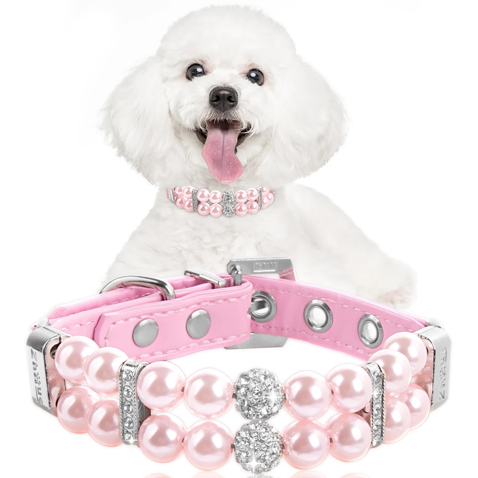 HOWWFALY Dog Cat Pearl Collars with Crys... |