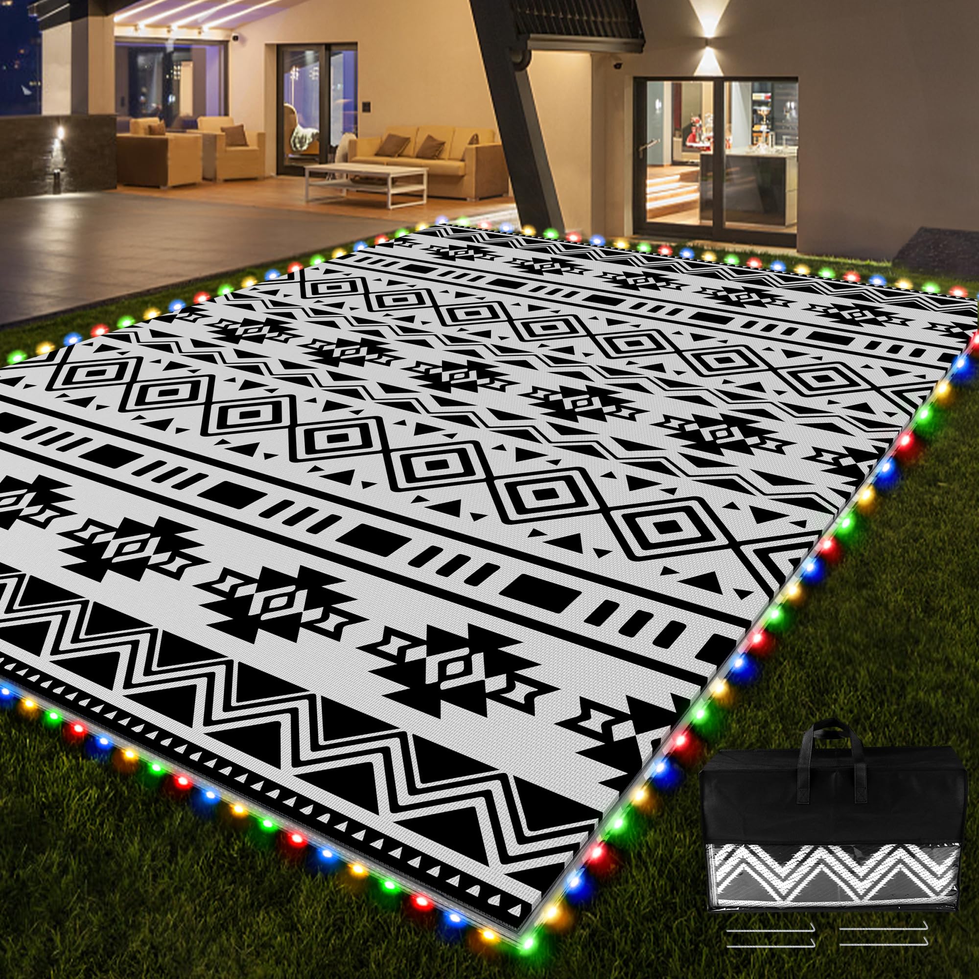 RV Outdoor Rug with Lights 8x10ft, Outdo... |