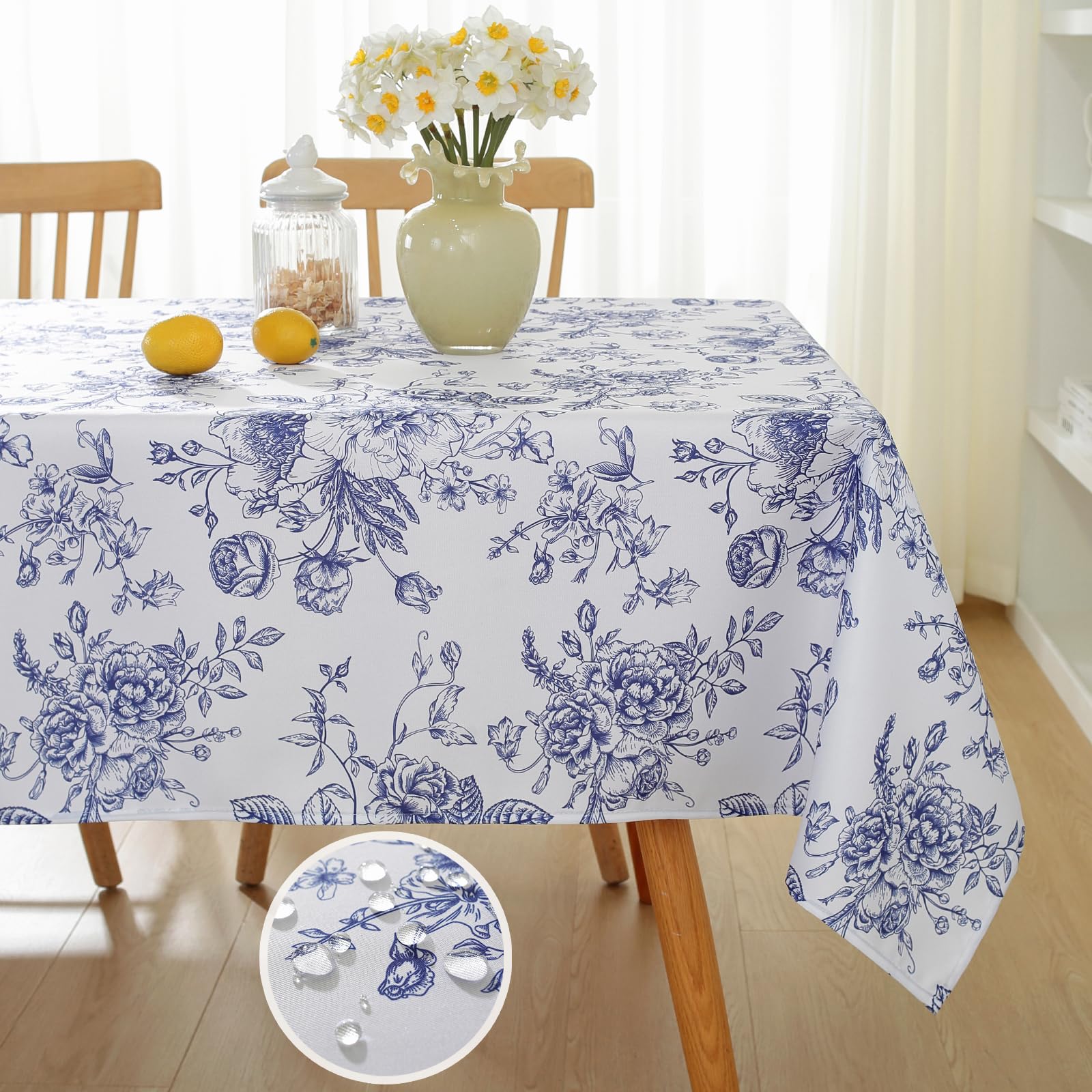 Honellaty Blue and White Floral Tableclo... |