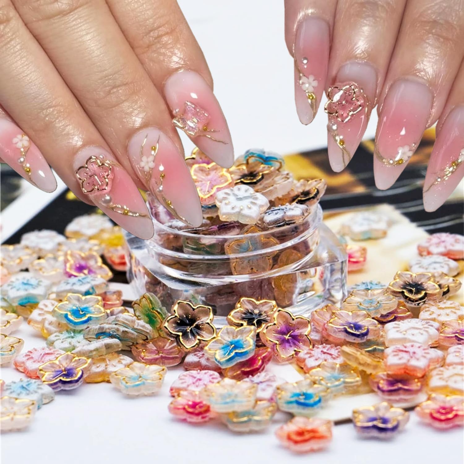 50Pcs Flower Nail Charms Clear Crystal N... |