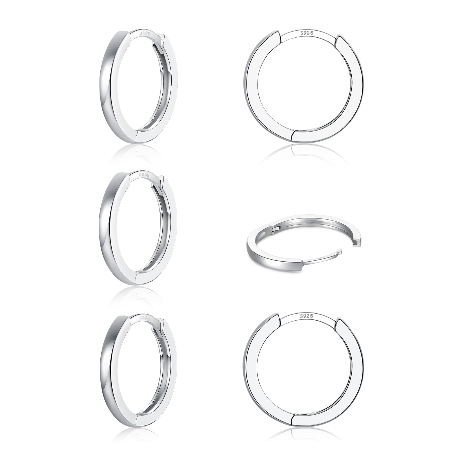 3 Pairs 925 Sterling Silver Hoop Earring... |