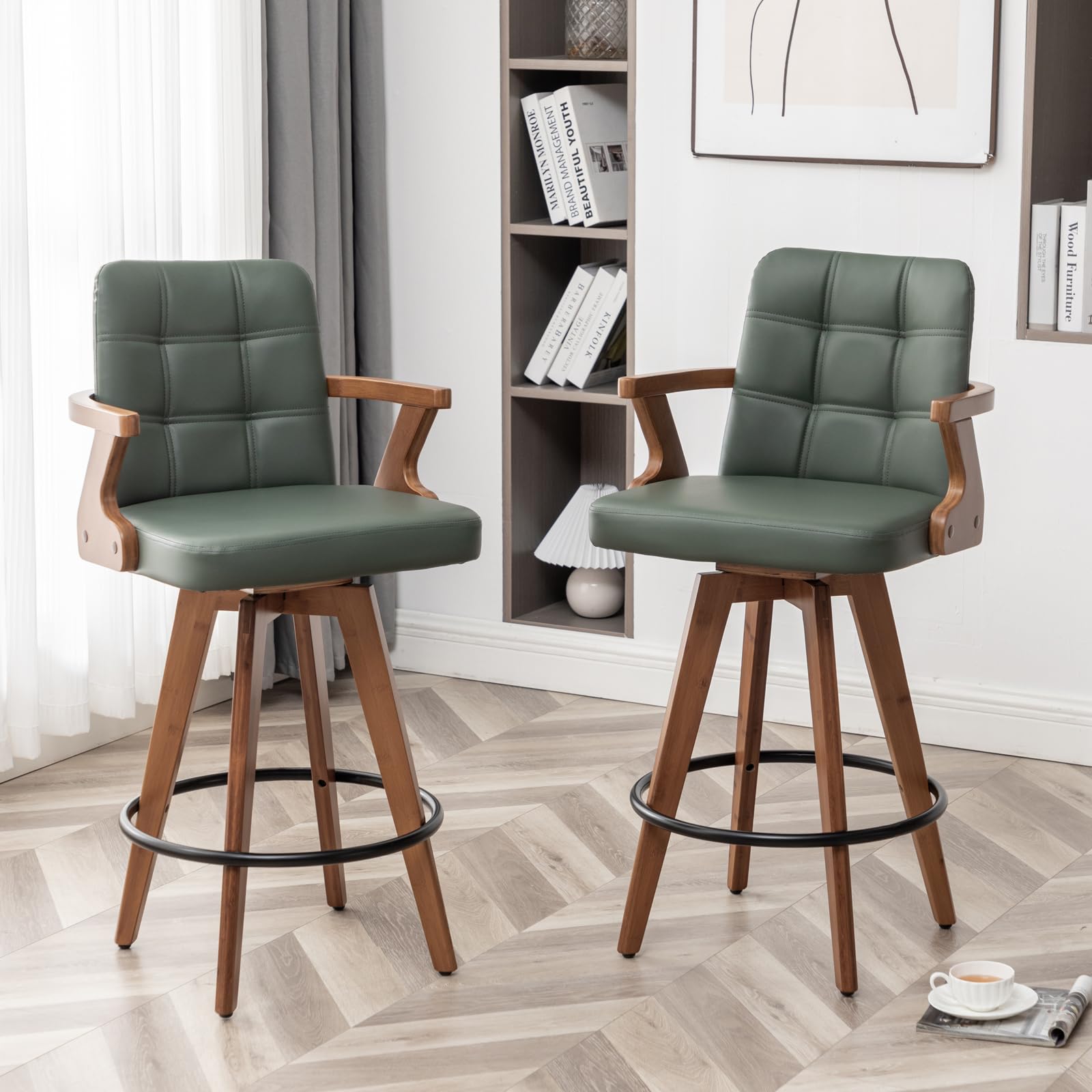 MEKLIBA 30” Bar Height Bar Stools,Leathe... |