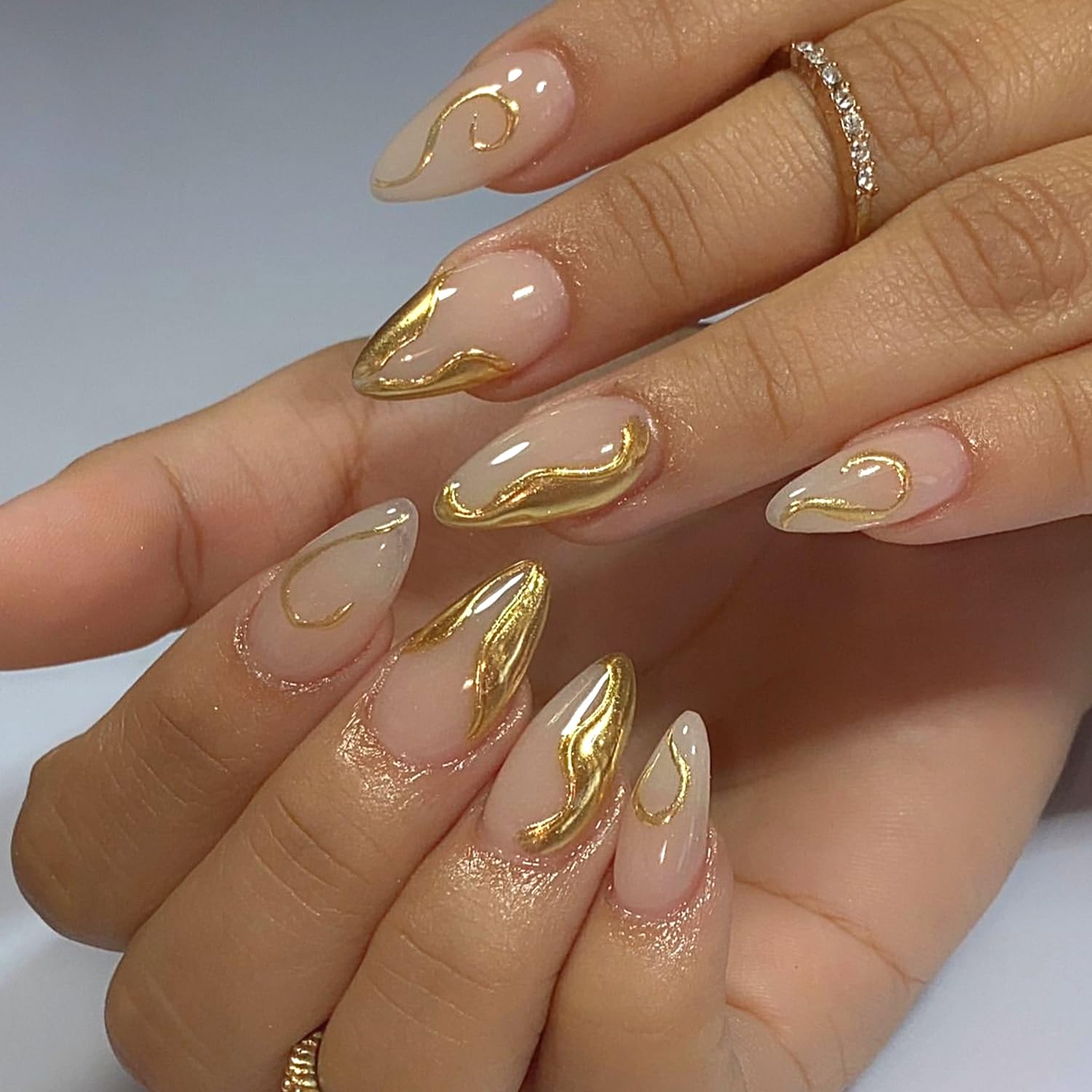 Gold French Tip Press on Nails 3D Irregu... |
