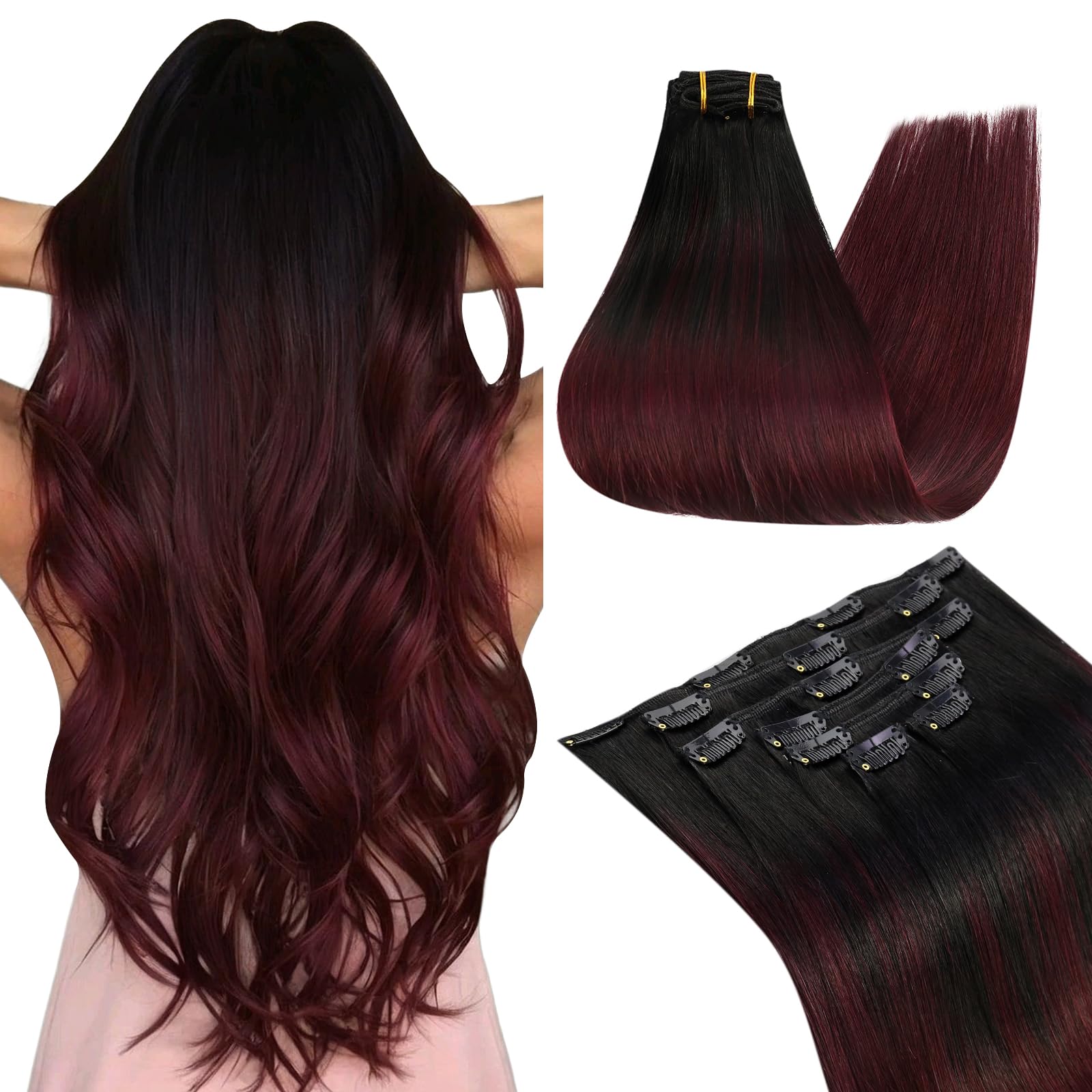 Ugeat Human Hair Clip in Extensions Ombr... |