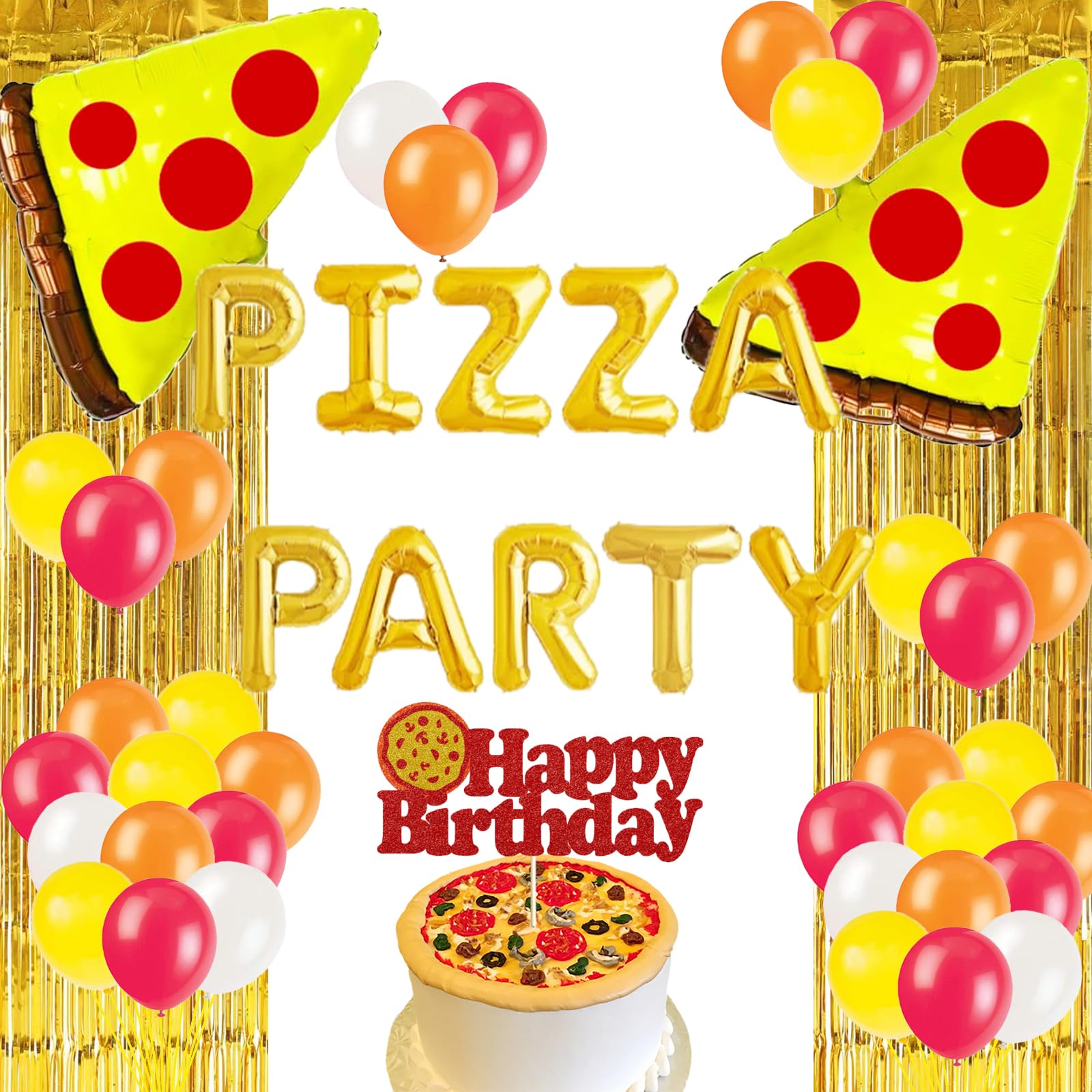 Pizza Party Decorations Gold Time Balloo... |