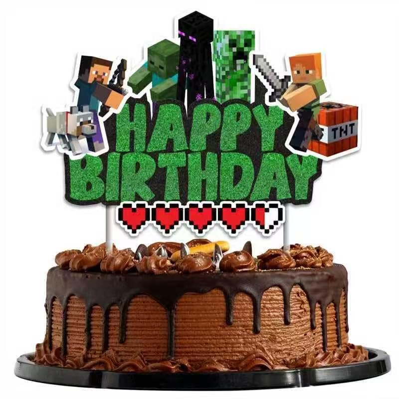 Pixel Craft Gamer Birthday Cake Topper, ... |