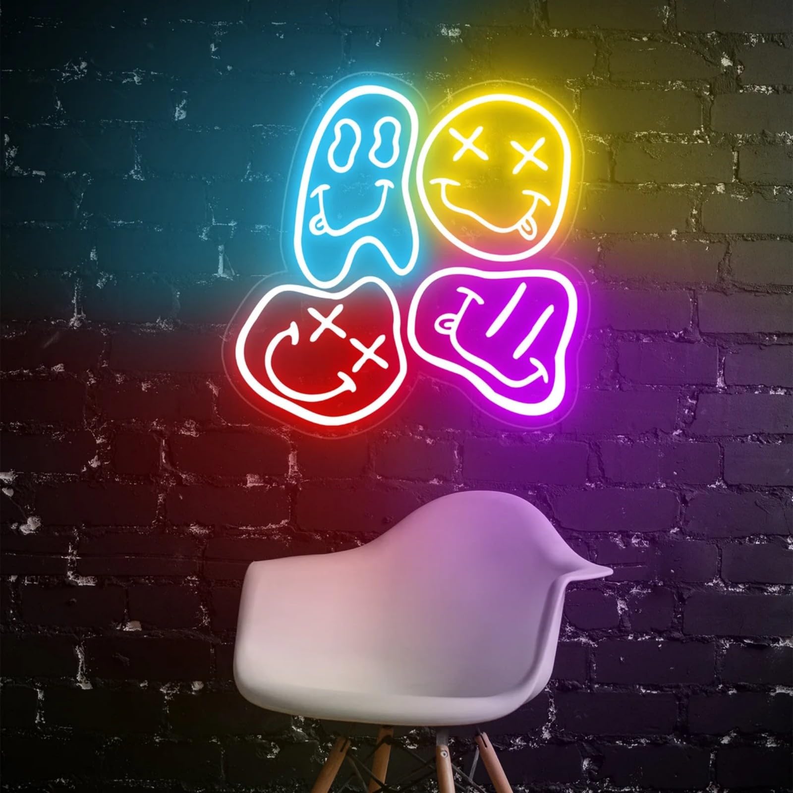 Distorted Smile Face Neon Led Sign, Home... |