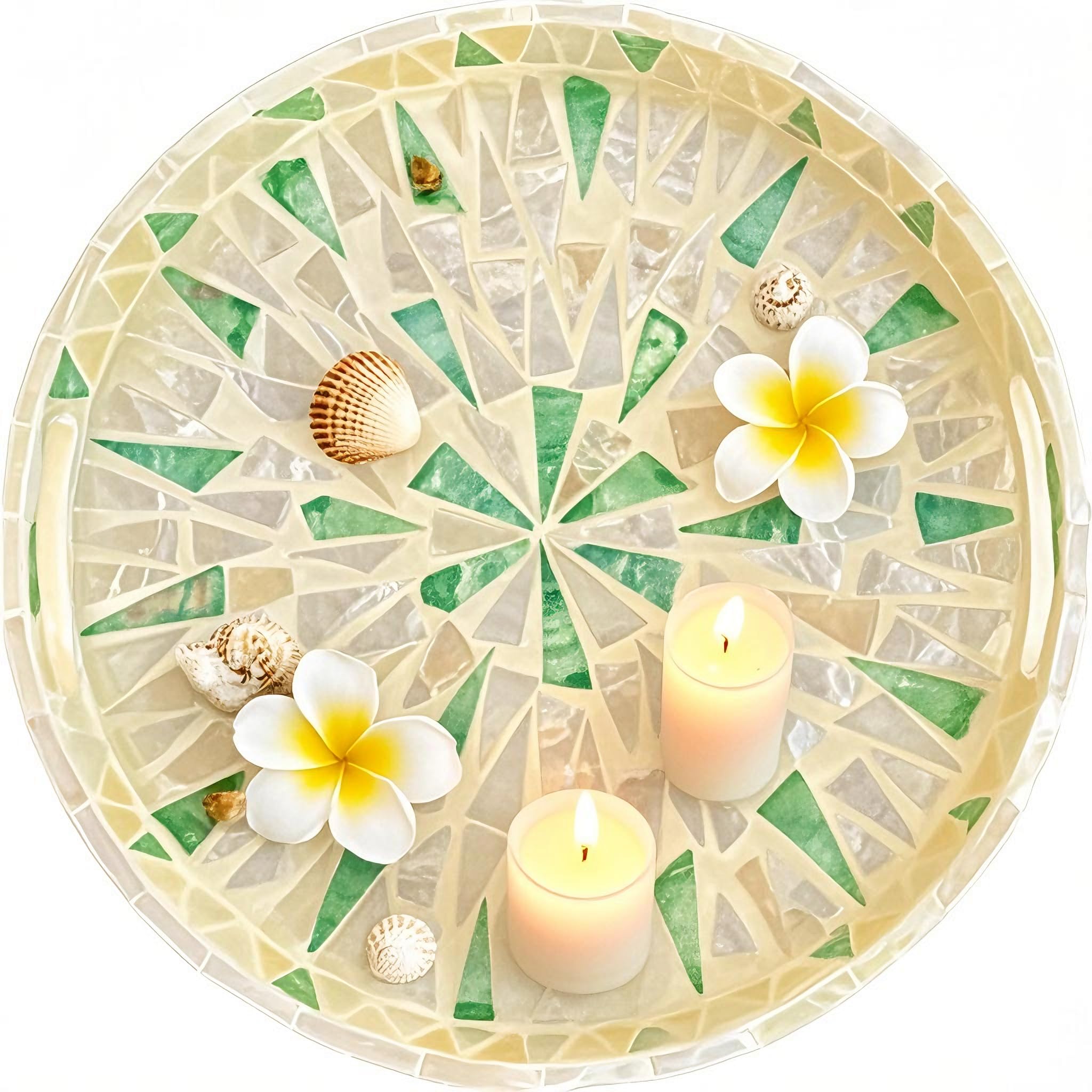 I-lan 12 Inch Round Beige Green Mother o... |