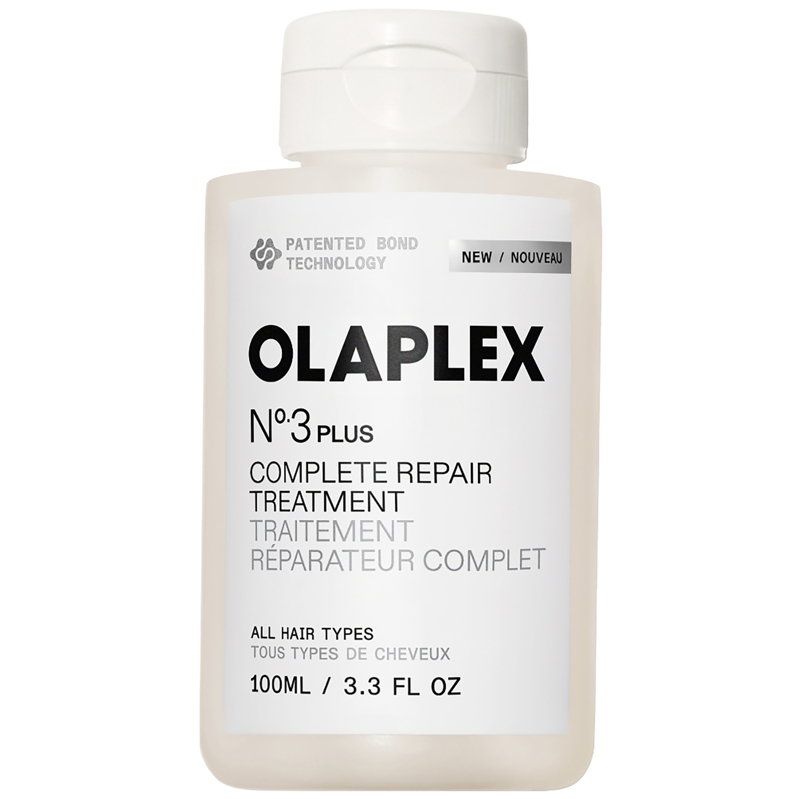 Transform damaged hair in just 3 minutes before you shampoo with N°. 3PLUS COMPLETE REPAIR TREATMENT. This hair damage repair treatment is clinically proven to create 3X stronger, * softer hair. ** It rebuilds all 3 hair bonds deep in every strand for 360° repair and damage defense-past, present, and future. For all hair types and all types of damage. Fast. Easy. Protein-free and color-safe. Powered by patented OLAPLEX Bond Building Technology™. | Olaplex No. 3 Plus Complete Repair Treatment, 100 ml | Dermstore