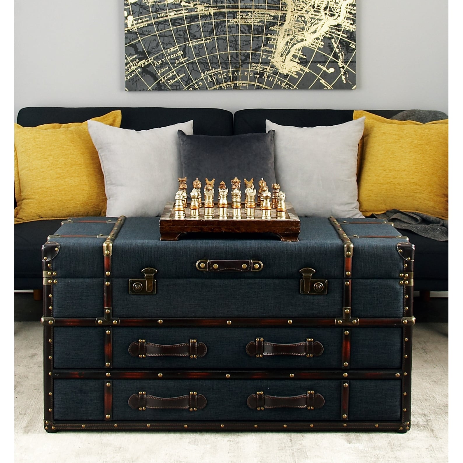 Dark Blue Linen Fabric Upholstered Trunk... |