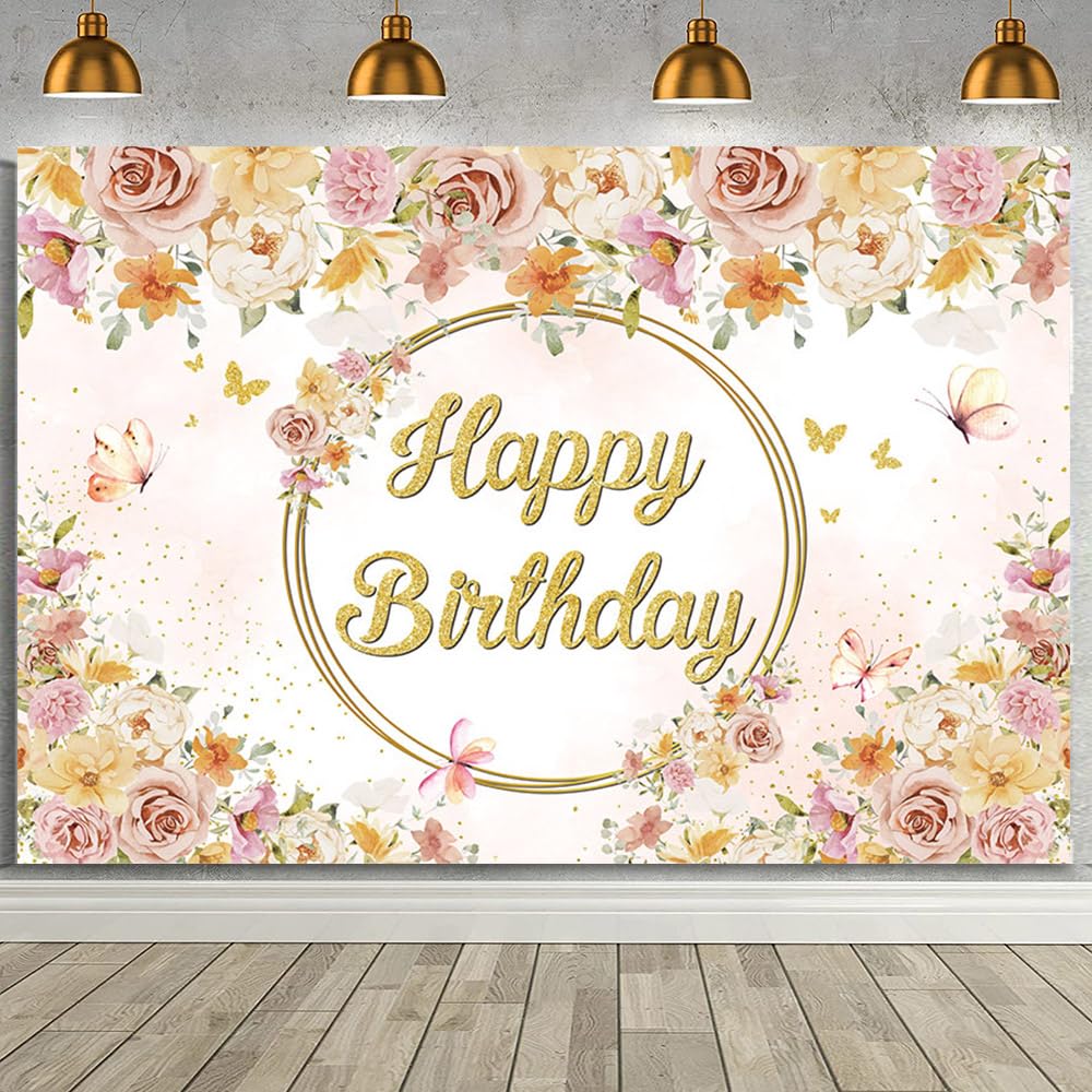 MEHOFOND 7x5ft Floral Happy Birthday Bac... |