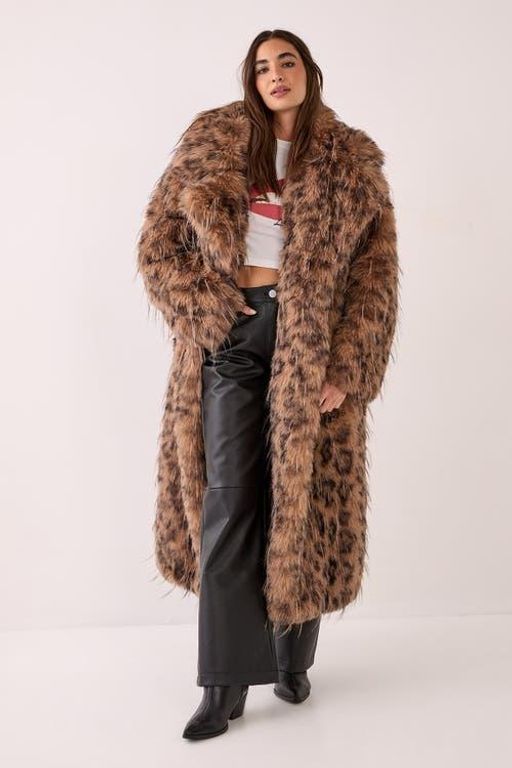 Faux Fur Longline Coat - Brown - Nasty G... |