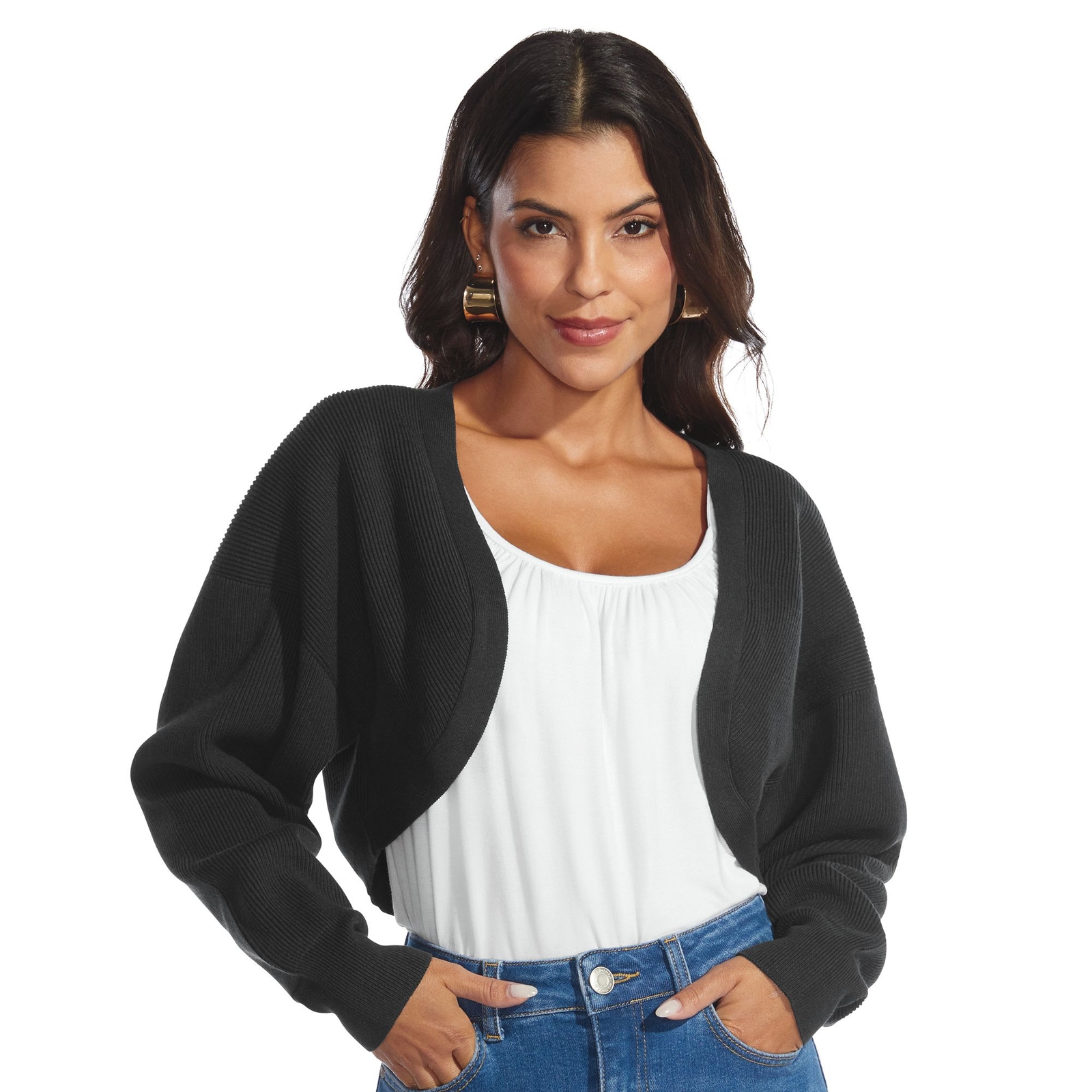 Masseys Sweater Shawl (Size 4X) Black, N... |