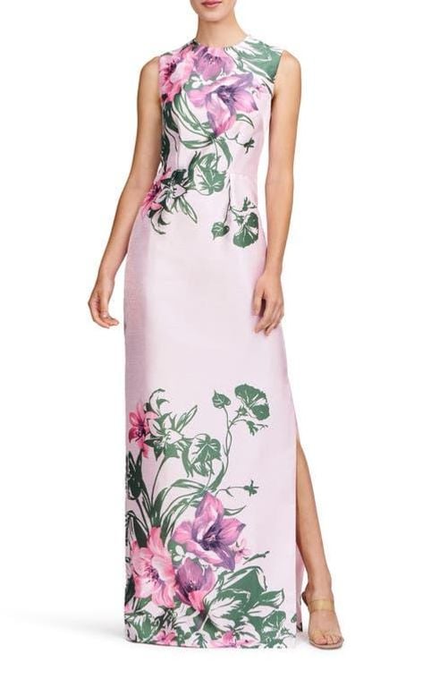 Ayla Placement Print Column Gown - White... |