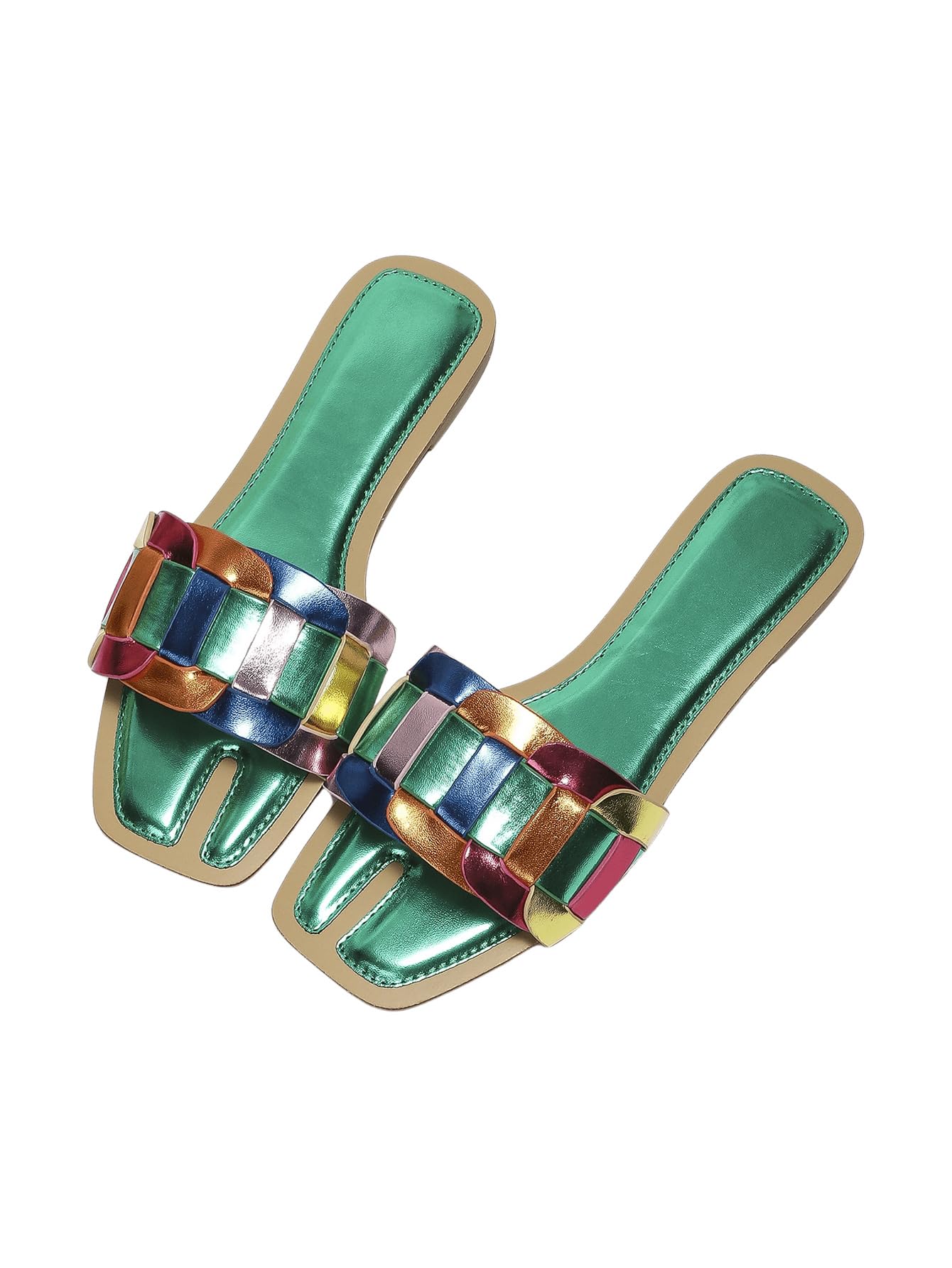 GORGLITTER Women's Metallic Flat Sandals... |