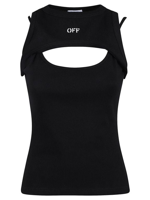 Ribbed Cutout Top - Black - Off-White c/... |