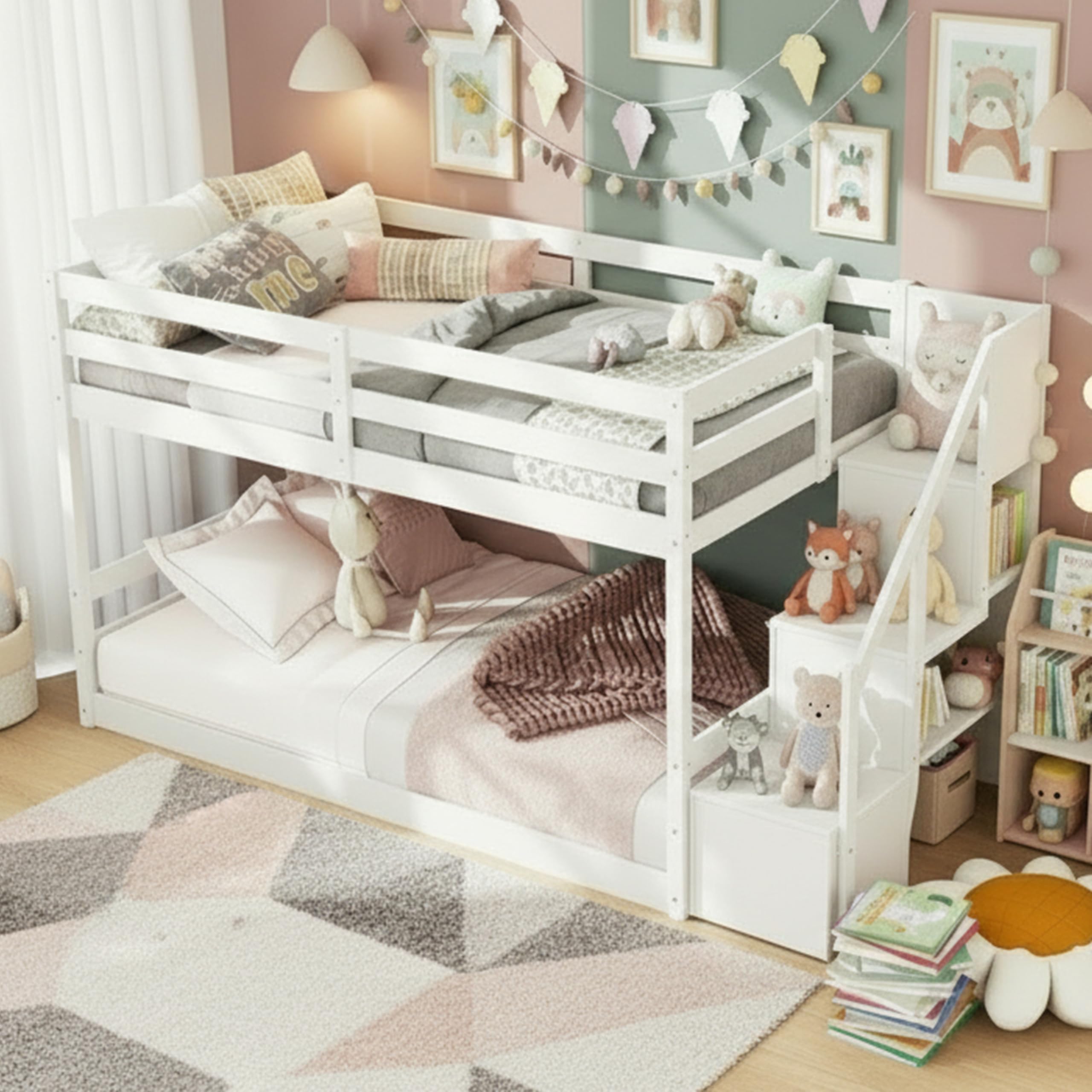 KOMFOTT Wood Twin Over Twin Low Bunk Bed... |