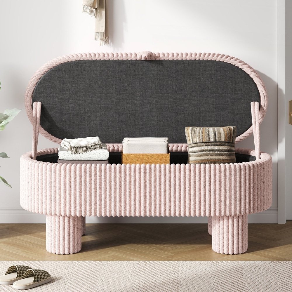 Storage Ottoman Corduroy Upholstered Ben... |
