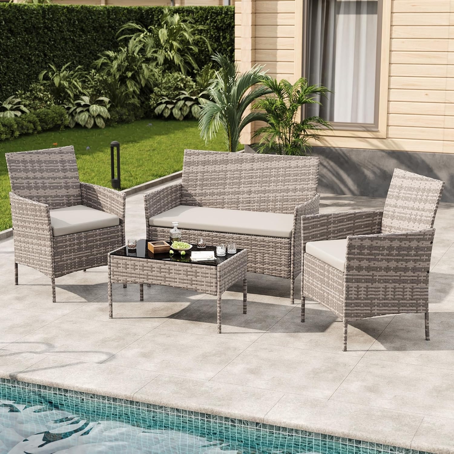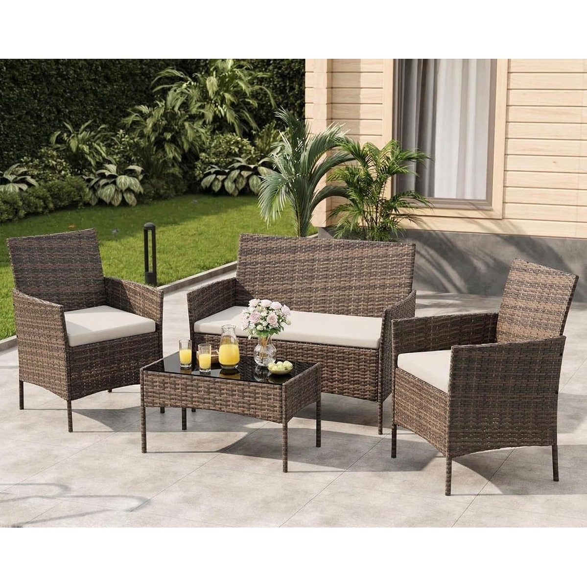 4 Piece Outdoor Patio Furniture Sets,Wic... |