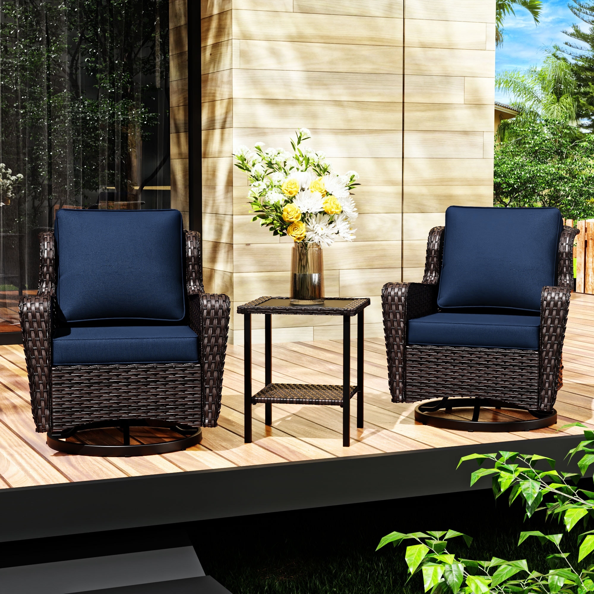 COZYWOR 3-piece Patio Rattan Swivel Chai... |