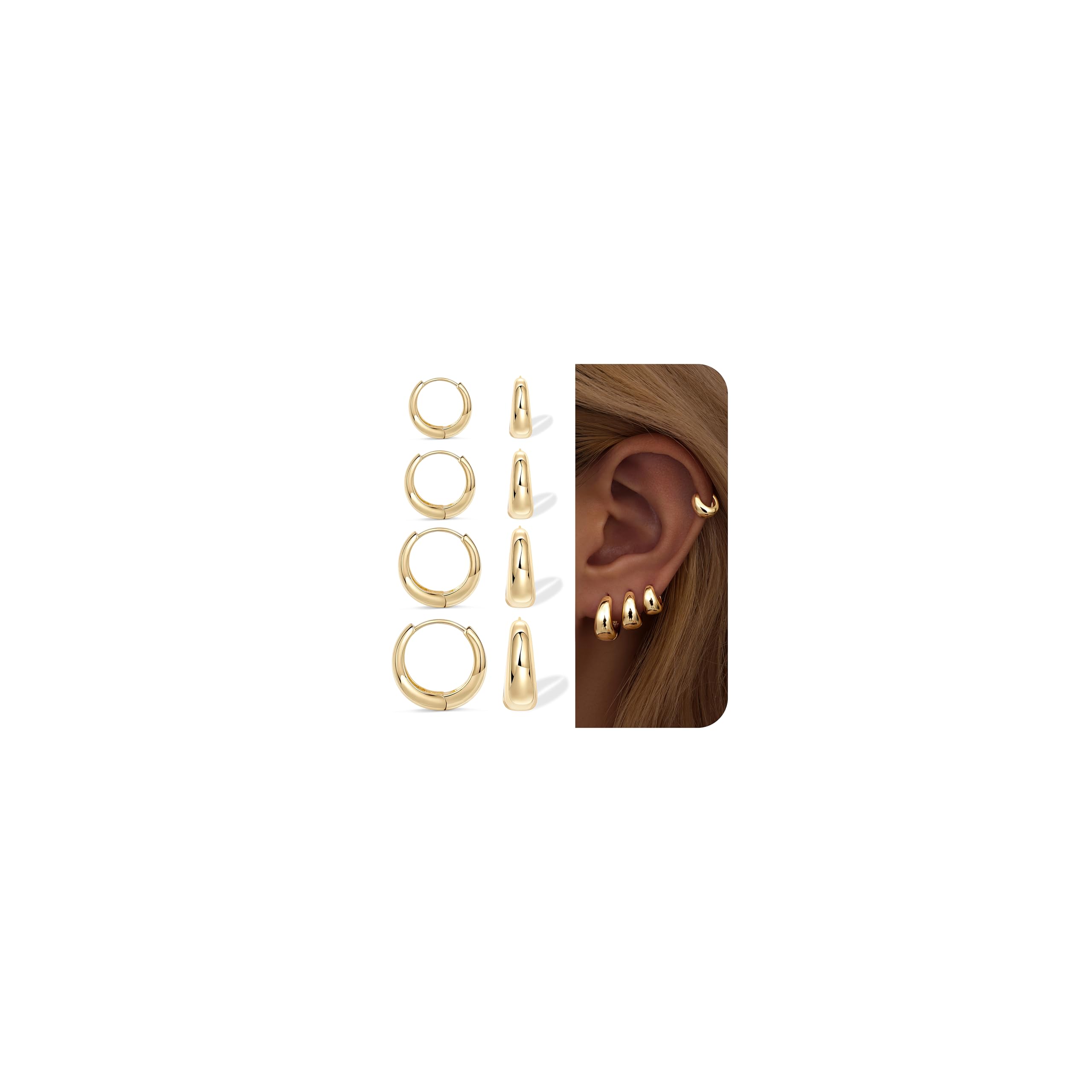 Poxtex Thick Gold Chunky Huggie Hoop Ear... |