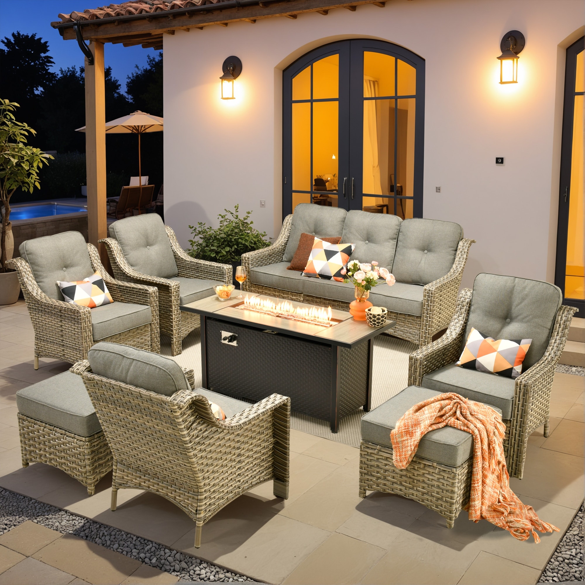OVIOS 8-piece Patio Wicker Conversation ... |