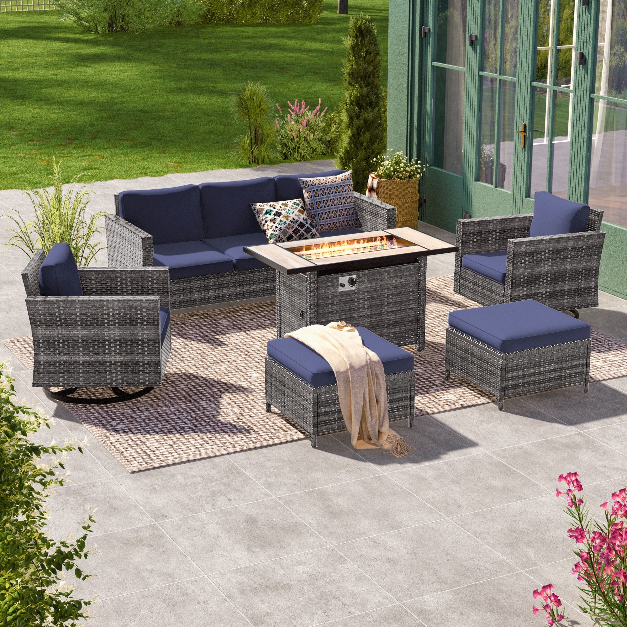 Fire Pit Table with Patio Sofa Chairs an... |