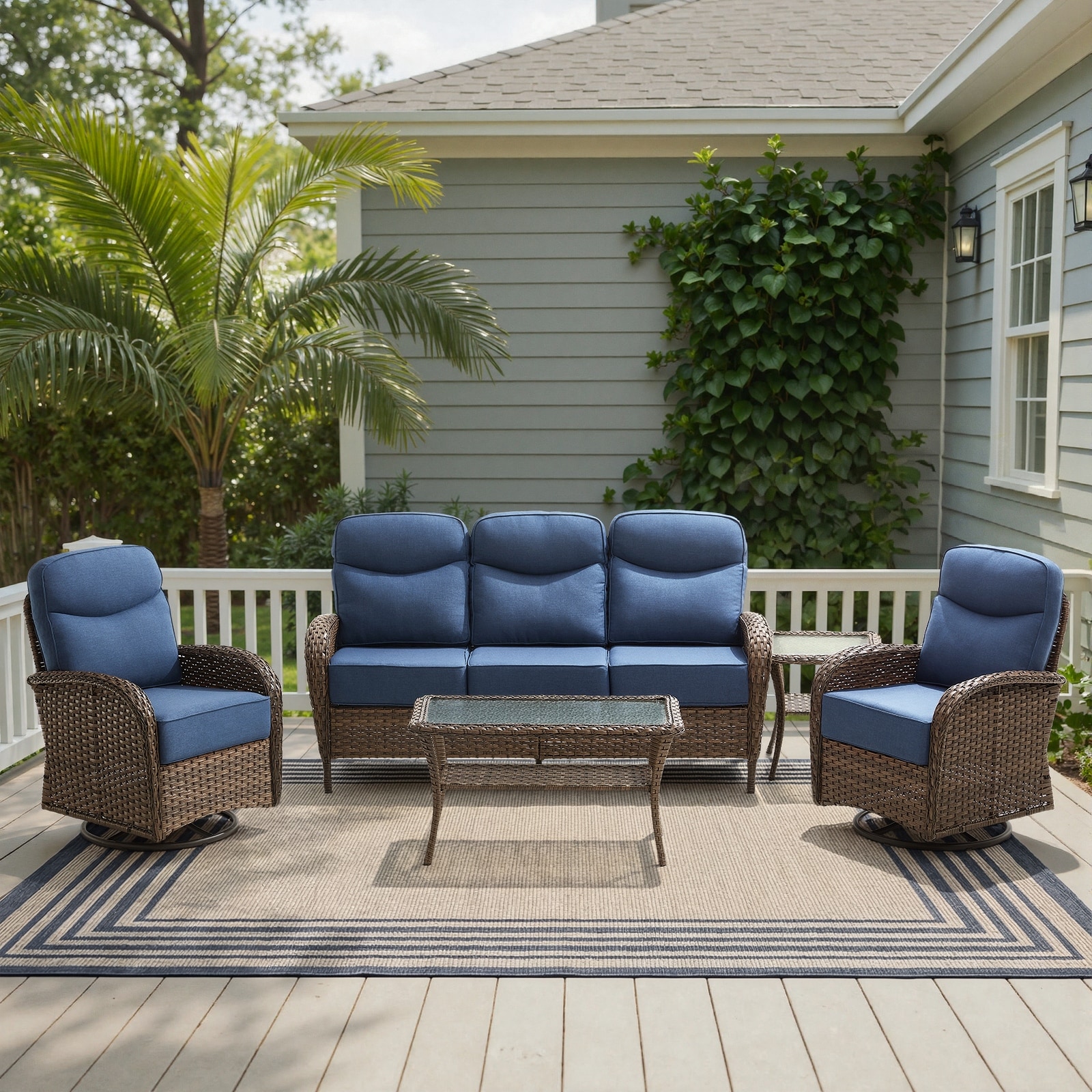 Make your outdoor area just as welcoming as your indoors with this expansive and sophisticated set. The hand-woven wicker and resilient cushions are designed to last and included waterproof sofa covers ensure the longevity of your set.