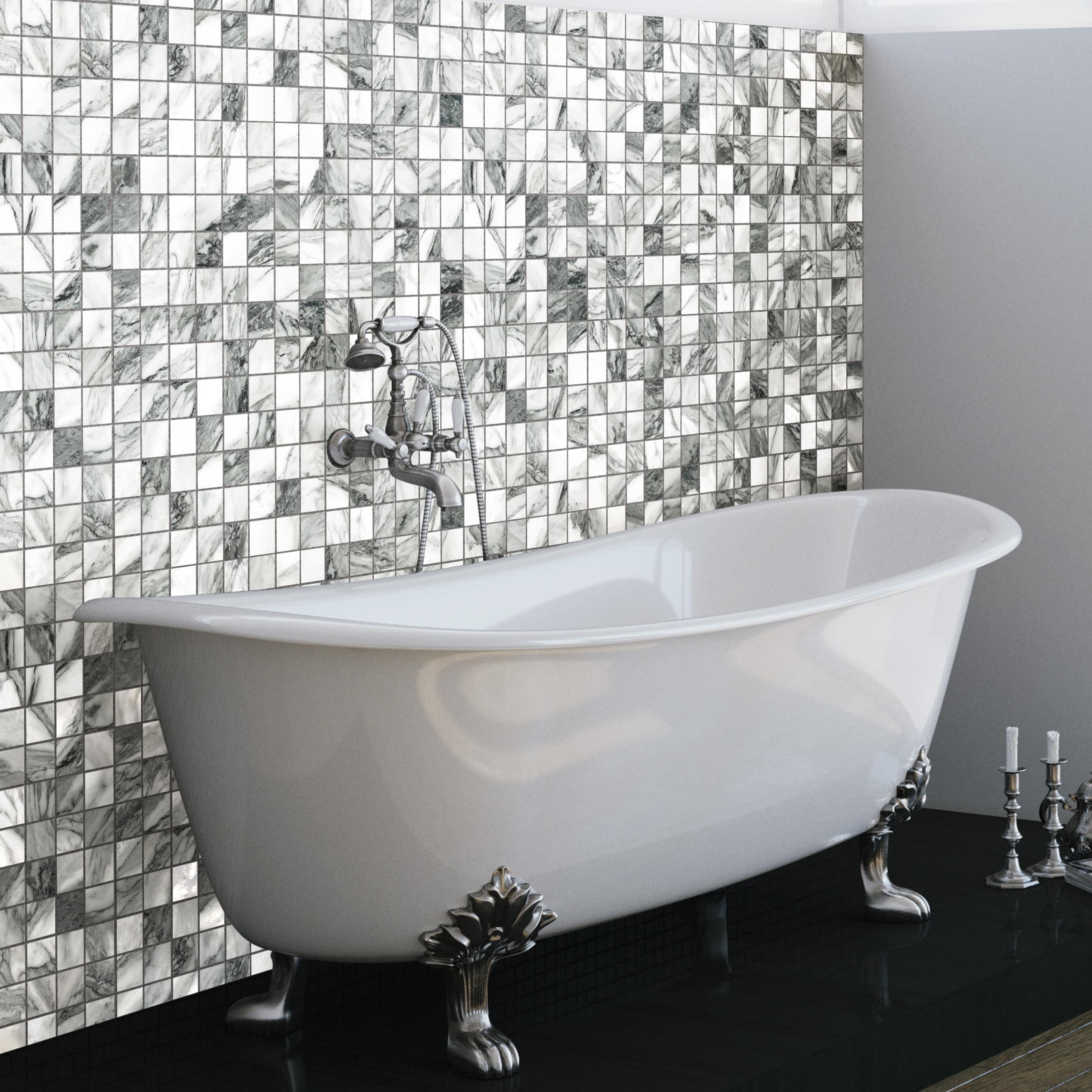 Offering a mosaic look, our Hudson Rhombus Glossy Black Porcelain Floor and Wall Tile features a smooth, glossy finish, providing decorative appeal that adapts to a variety of stylistic contexts.