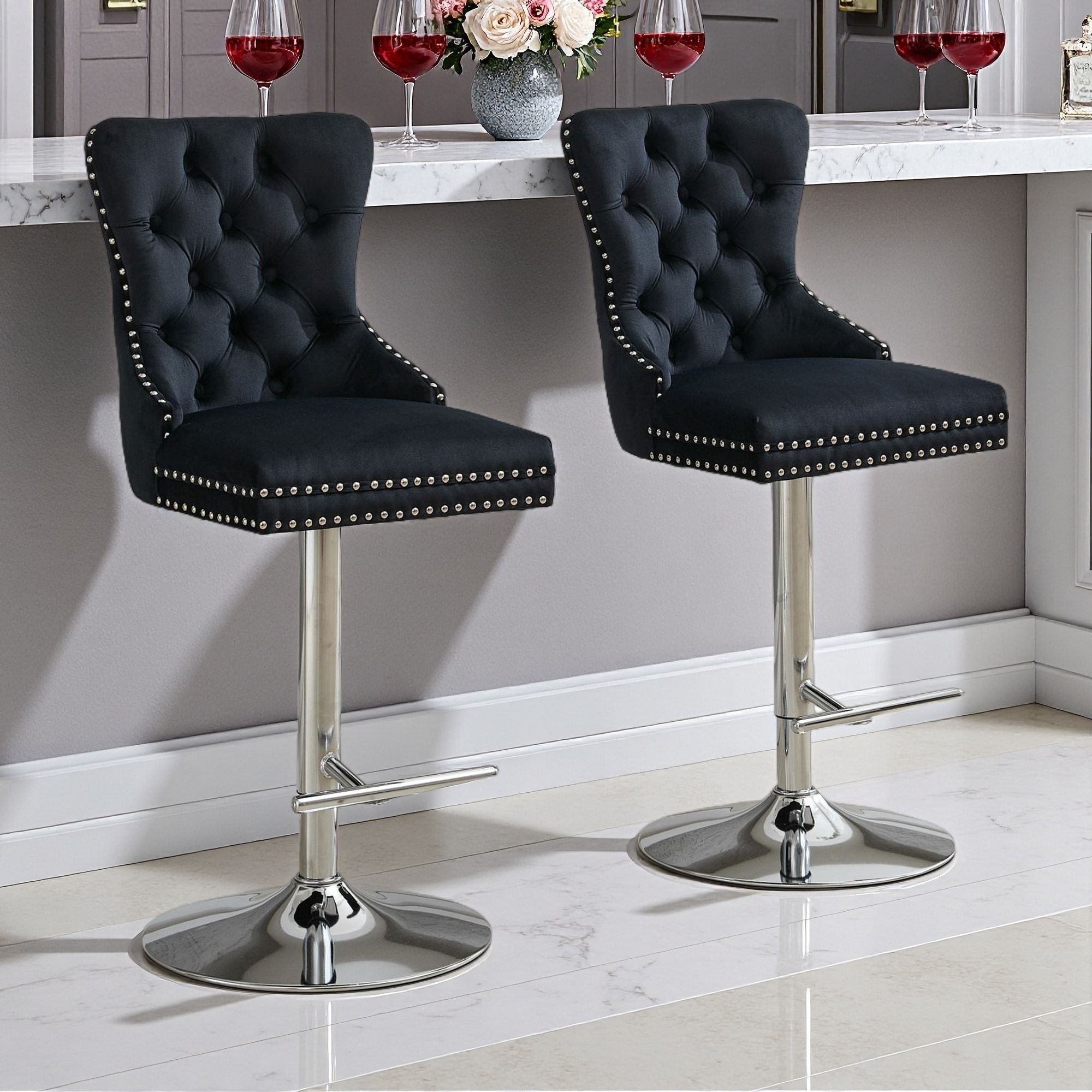 49.9"H Set of 2 Velvet Swivel Barstools ... |