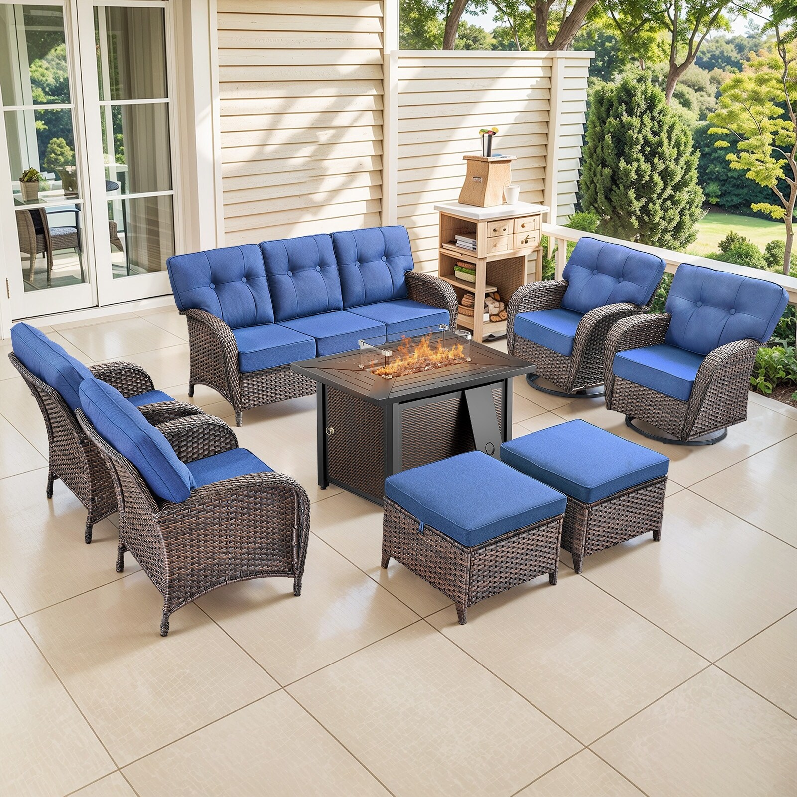 Elevate your outdoor living space with this 6-piece Patio Outdoor Wicker Sofa Set with Fire Pit Table. The handwoven resin wicker and all-steel frame provide a contemporary design that is both lightweight and durable.