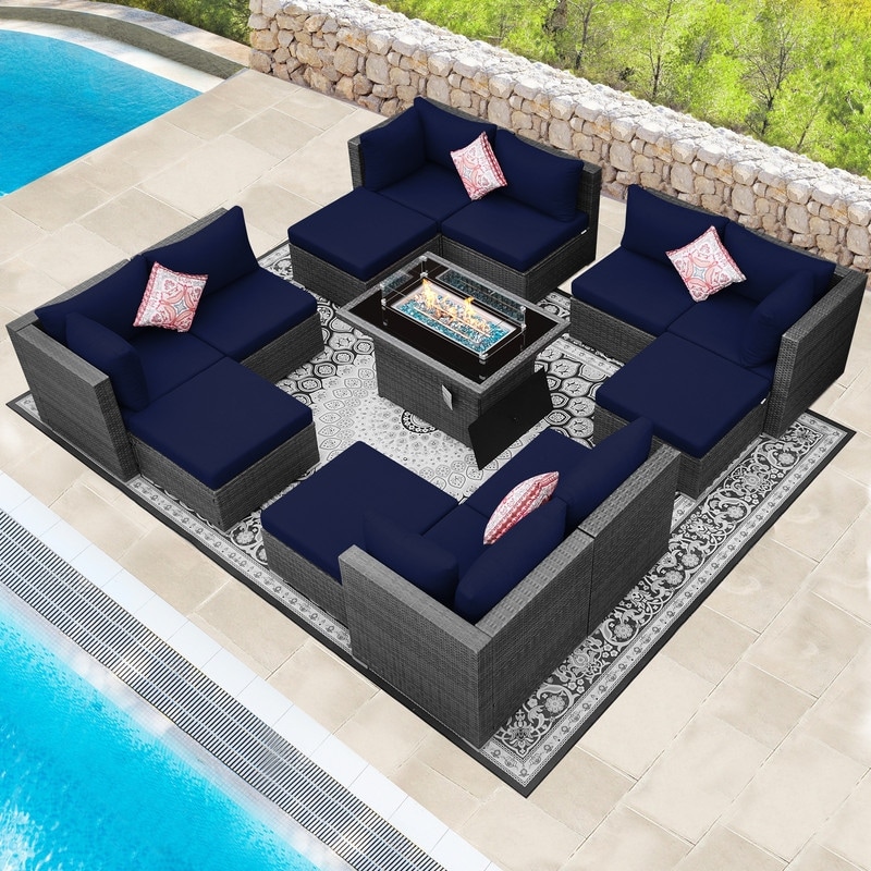 Upgrade your outdoor living with this wicker patio conversation set. The modular sectional creates flexible U or L configurations to seat 10 & Up. Pair the oversized, high-back deep seating with the CSA-certified 43″ fire pit table for cozy evenings.