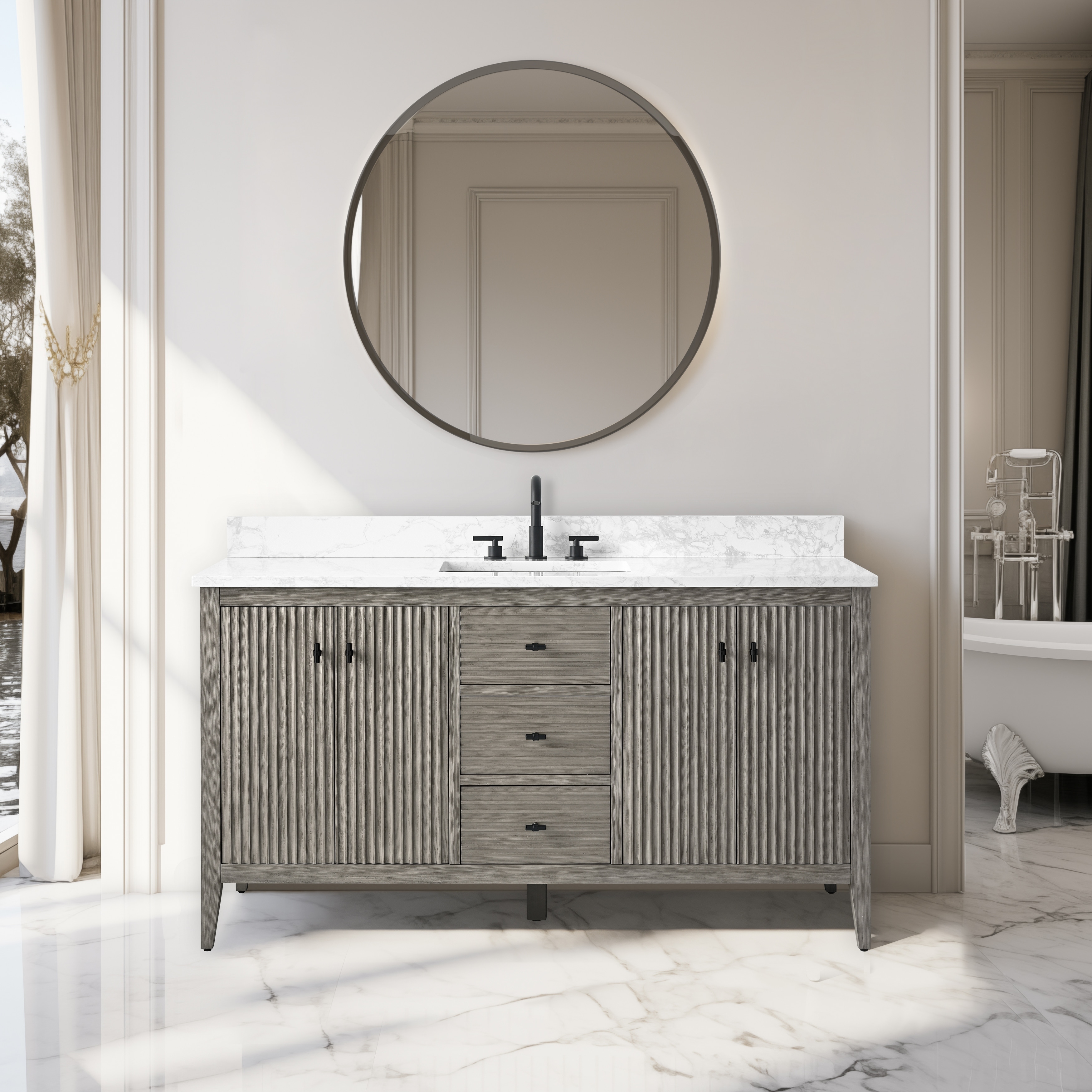 Elevate your bathroom's aesthetic with the Design House Concord 61-inch bathroom vanity cabinet.