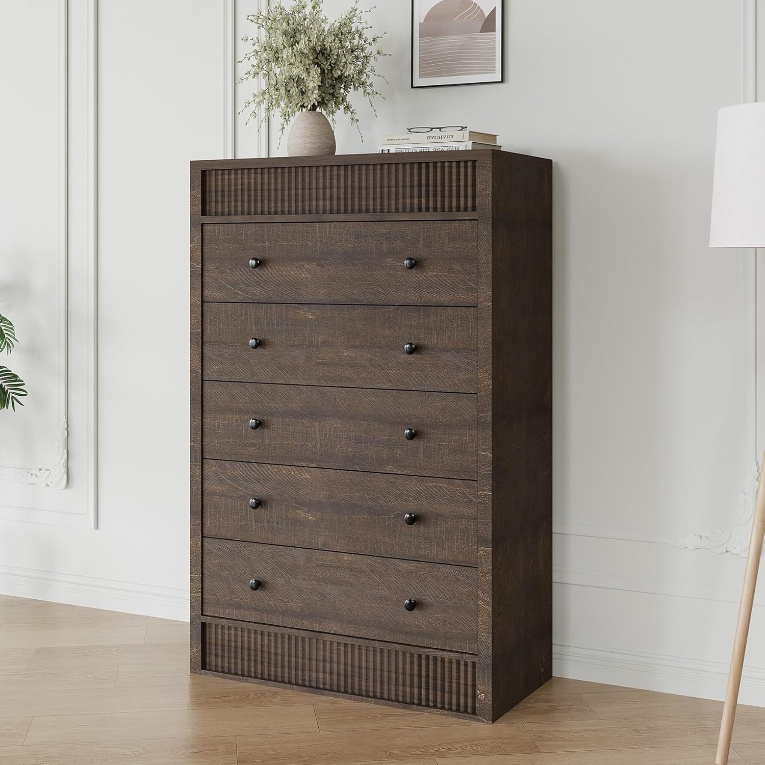 31.5" 3 Drawer Dresser, Fluted Wood Nigh... |