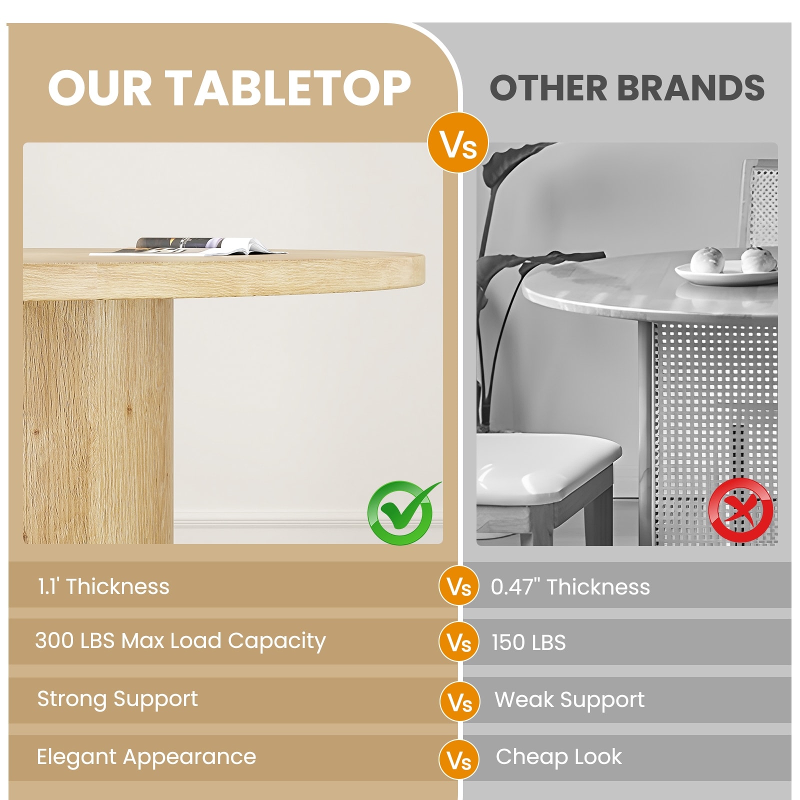 43" Round Dining Table for 4 People, Sma... |