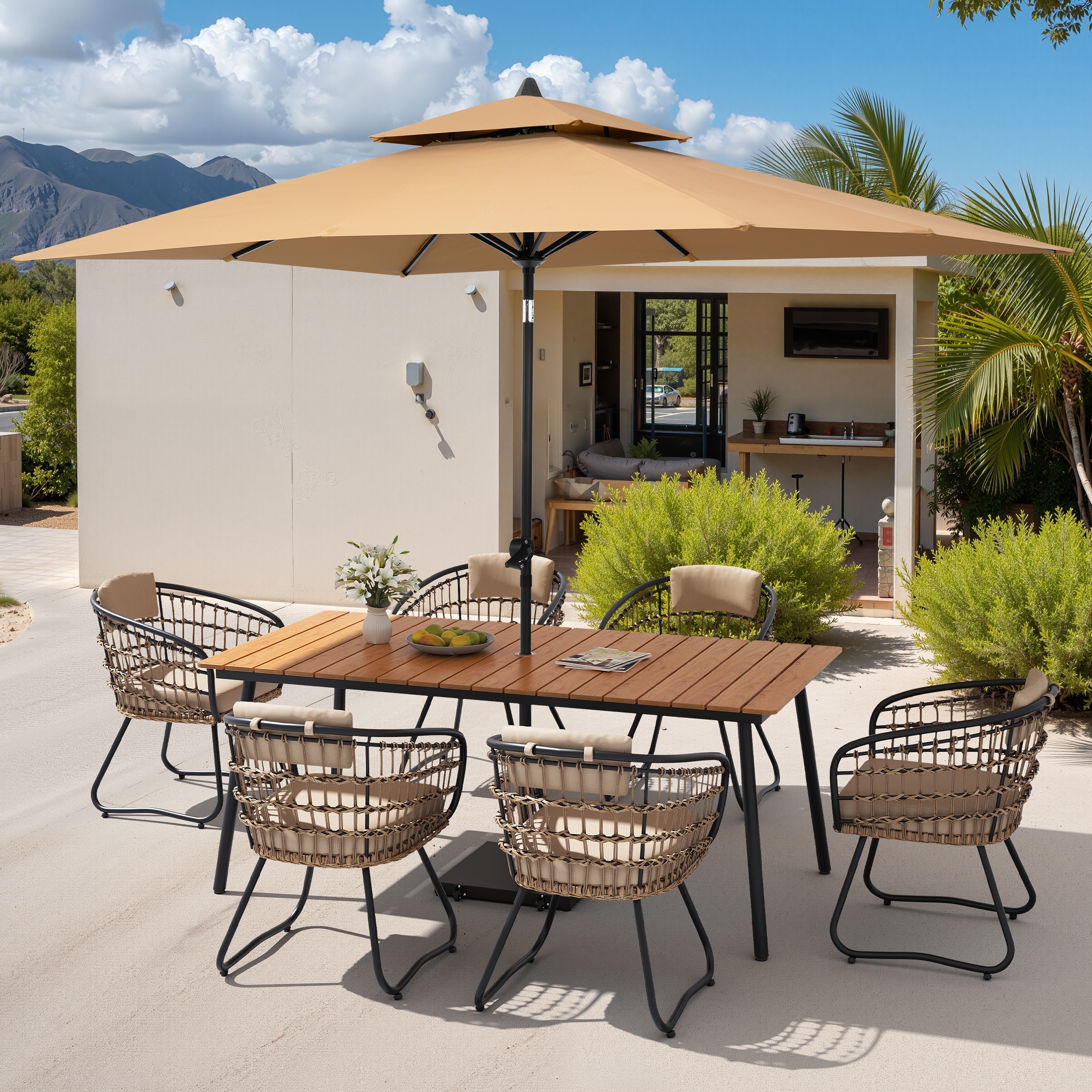 9PC Outdoor Patio Dining Set Wood-Like A... |