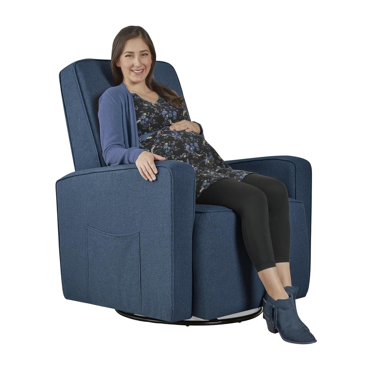 Experience the ultimate comfort with the electric nursery swivel glider recliner set. This modern recliner set features a built-in nightlight for easy nighttime feedings and USB ports to keep your devices charged.