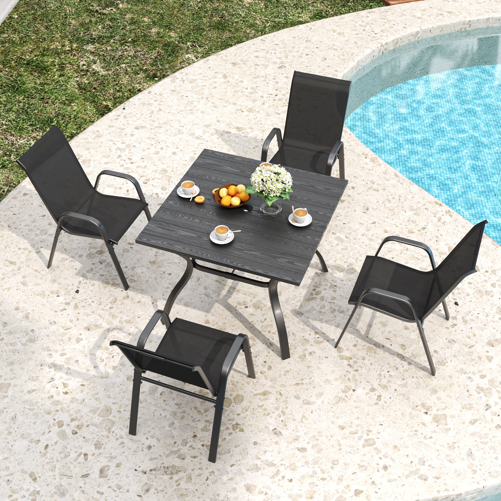 This garden dining set is a great choice for al fresco dining or just relaxing in the garden, backyard, or on the patio.