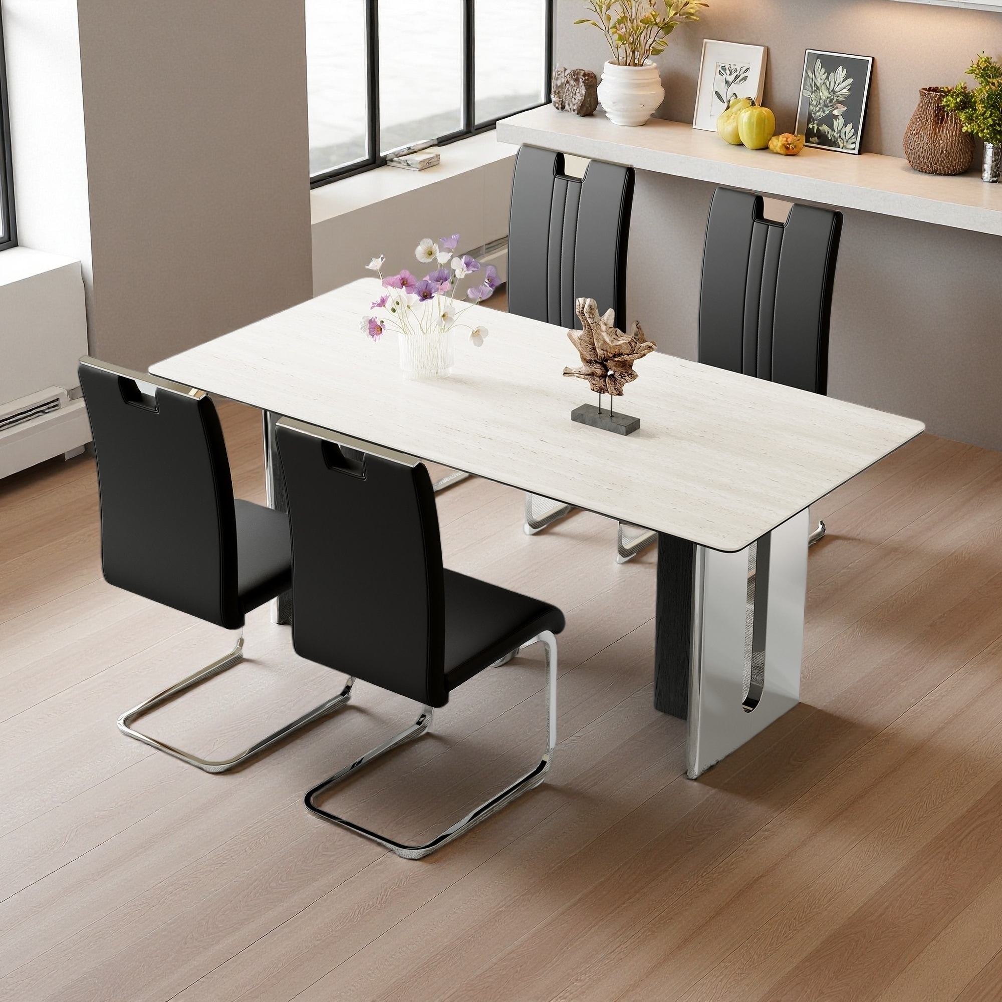 39"H Set of 4 PU Leather Bow-Shaped Chai... |