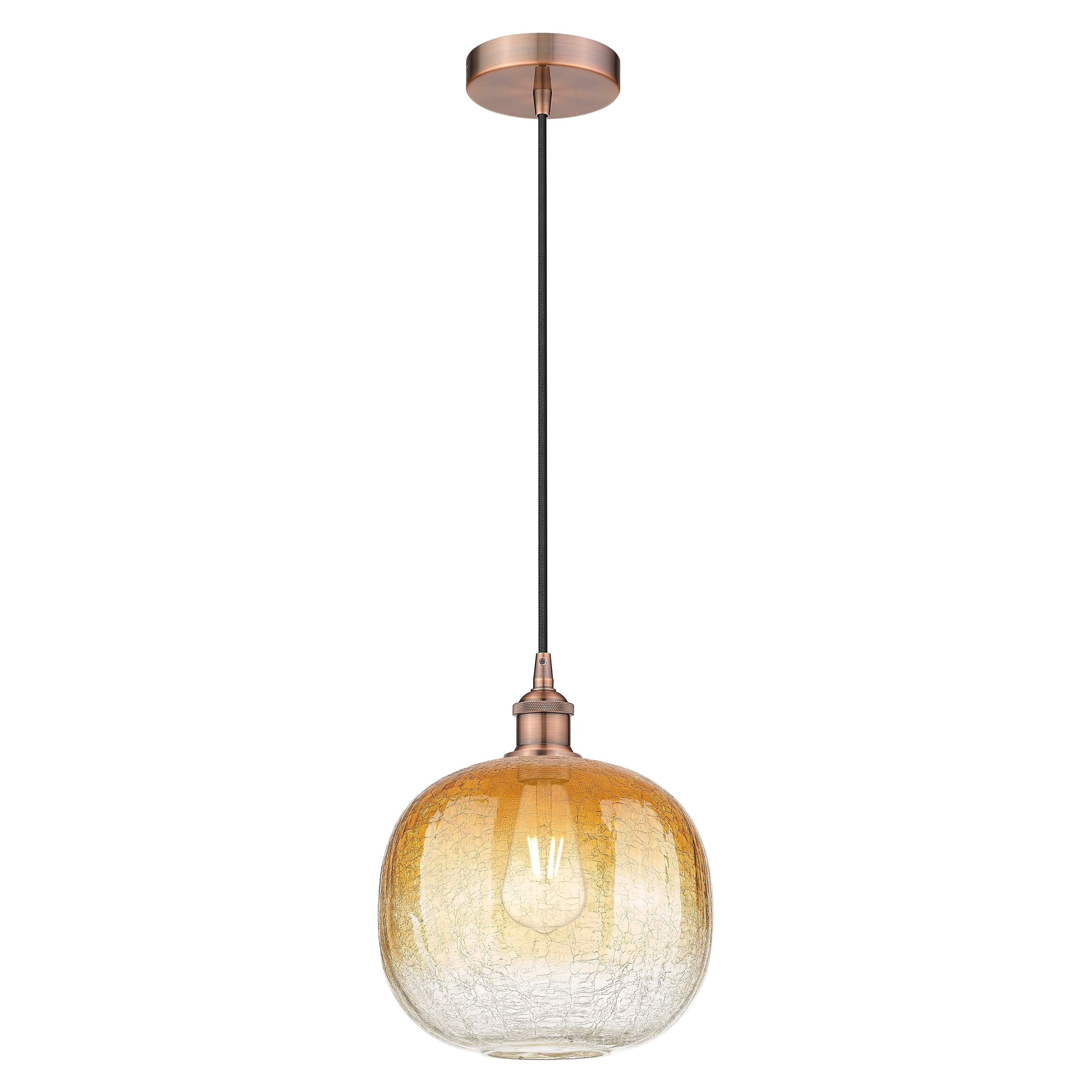 Features Constructed from steel Comes with a seedy glass shade Sloped ceiling compatible (1) 100 watt maximum medium (E26) bulb required Dimmable with compatible dimming bulbs Comes with (2) 8", (2) 12", and (3) 16" downrods Rated for dry locations…