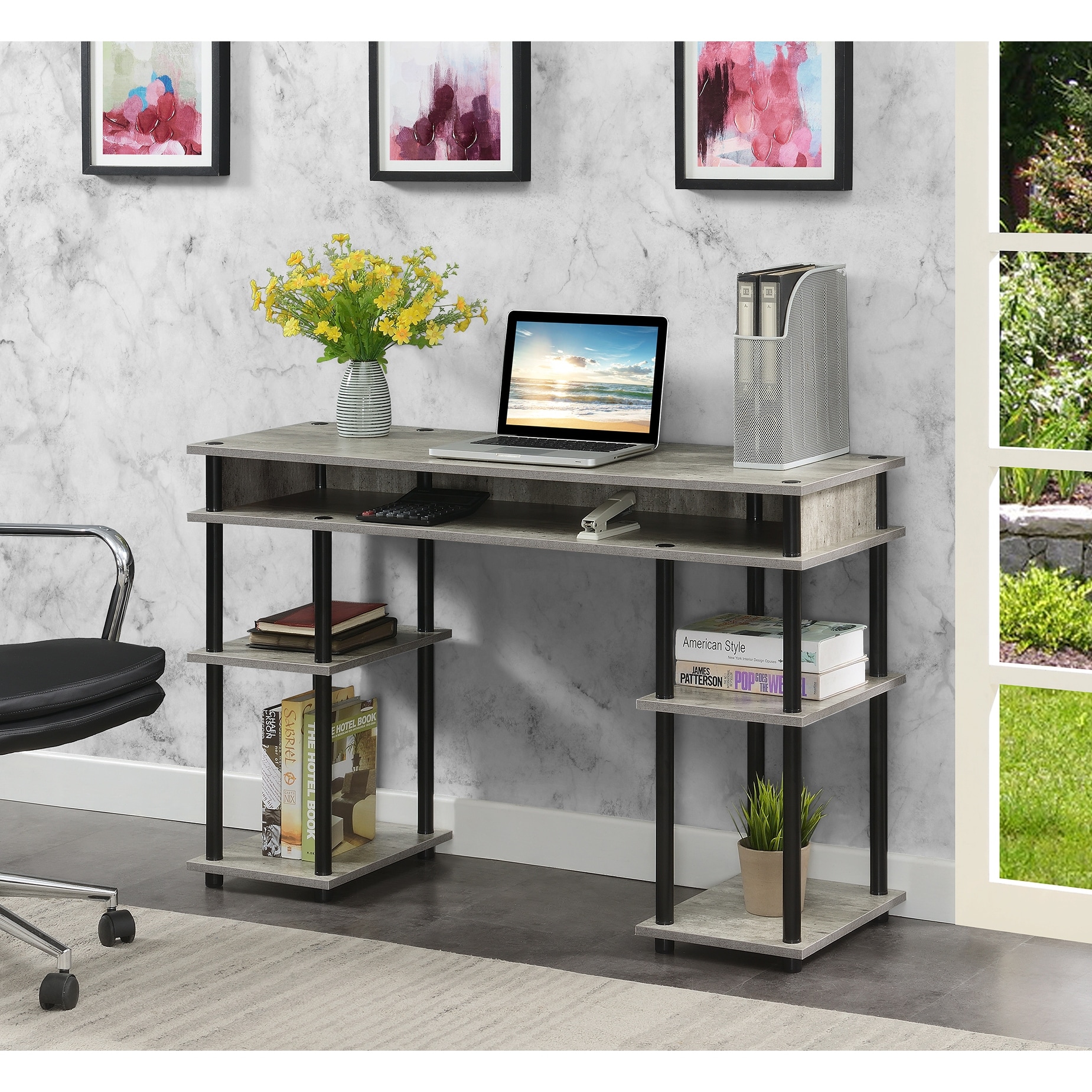 ★Perfect multi-use computer desk for all laptop or tablets; easy maintainable surface in an elegant black marble-look finish★Solid construction providing a rich, full look in the home office space of your small home, apartment or condo★This black…