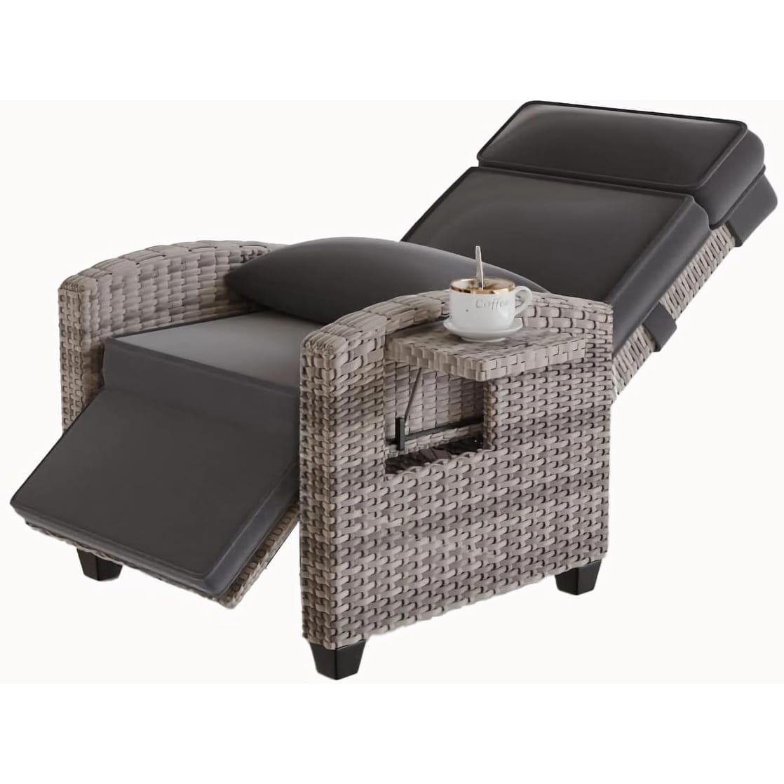 Outdoor Rattan Recliner w/Console,Adjust... |