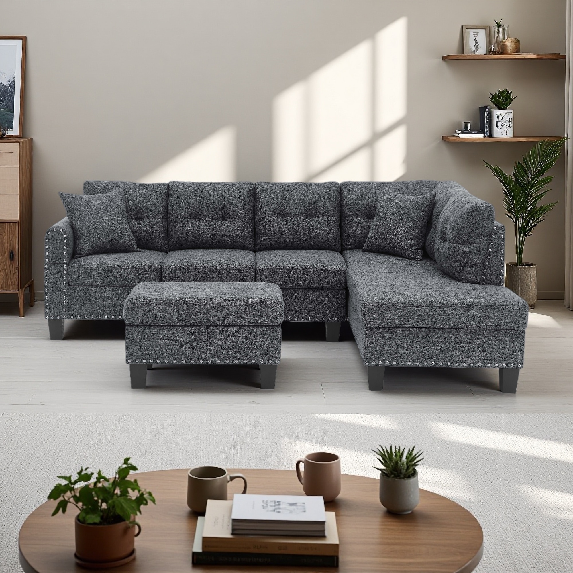 96" Polyester L-Shaped 5-Seat Sectional ... |